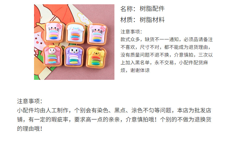 彩虹吐司三明治滴胶自制diy手机壳奶油胶仿真树脂配件冰箱贴 投诉
