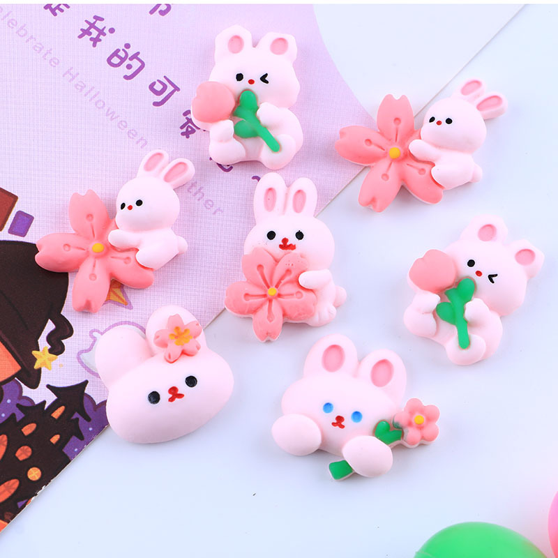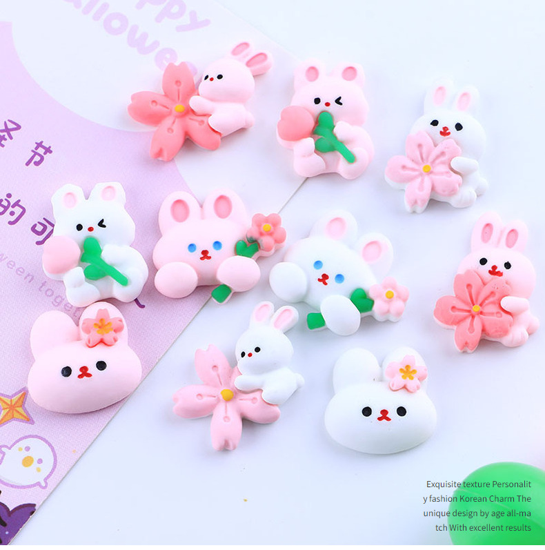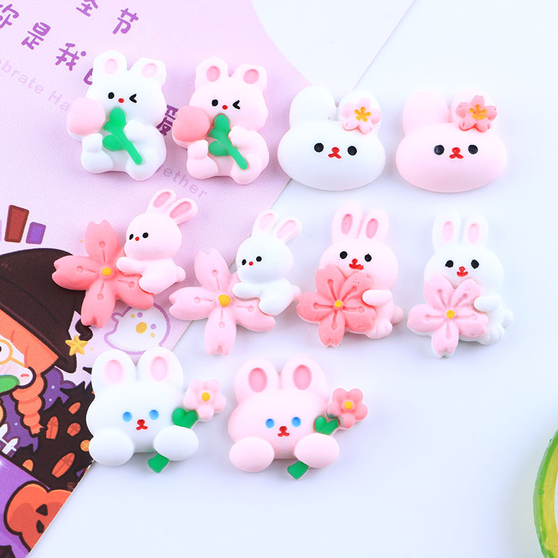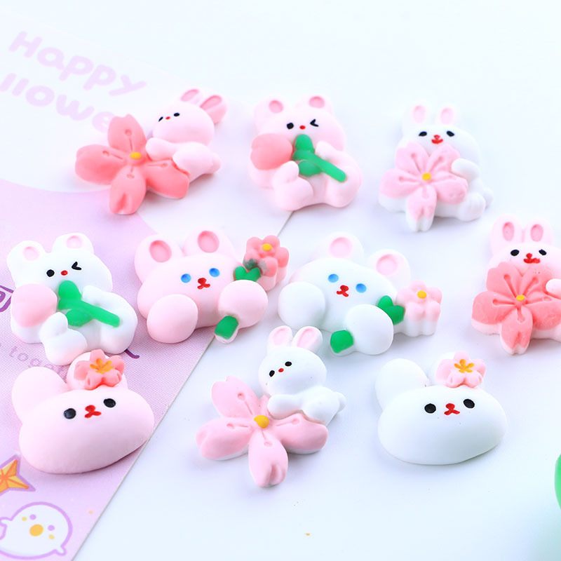 卡通兔兔系列自制奶油胶DIY手机壳树脂配件批发水果夹发夹冰箱贴