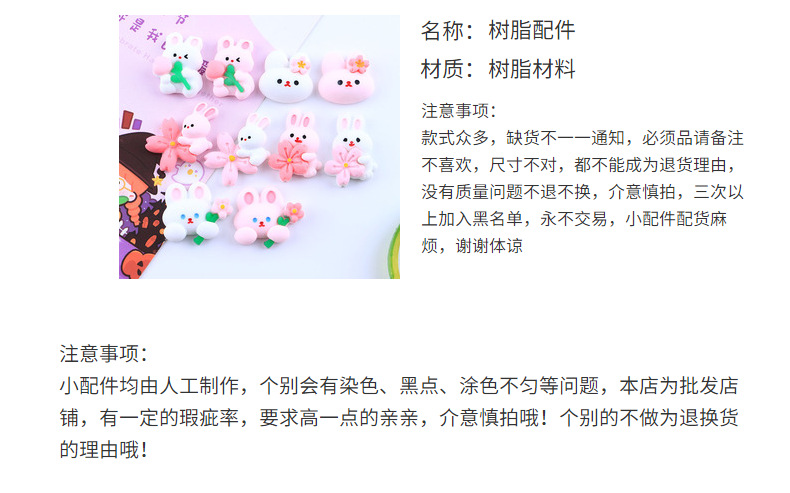 卡通兔兔系列自制奶油胶DIY手机壳树脂配件批发水果夹发夹冰箱贴 投诉