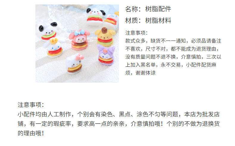 多层汉堡狗狗猫猫DIY亮面奶油胶树脂饰品配件发夹头绳材料装饰 投诉