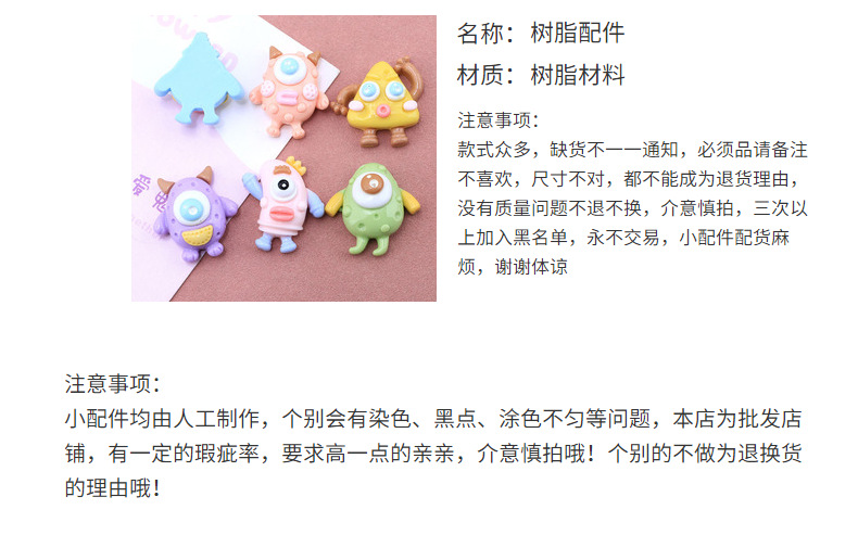 怪兽奶酪树脂配件批发DIY奶油胶手机壳发夹水杯冰箱贴材料包头绳 投诉