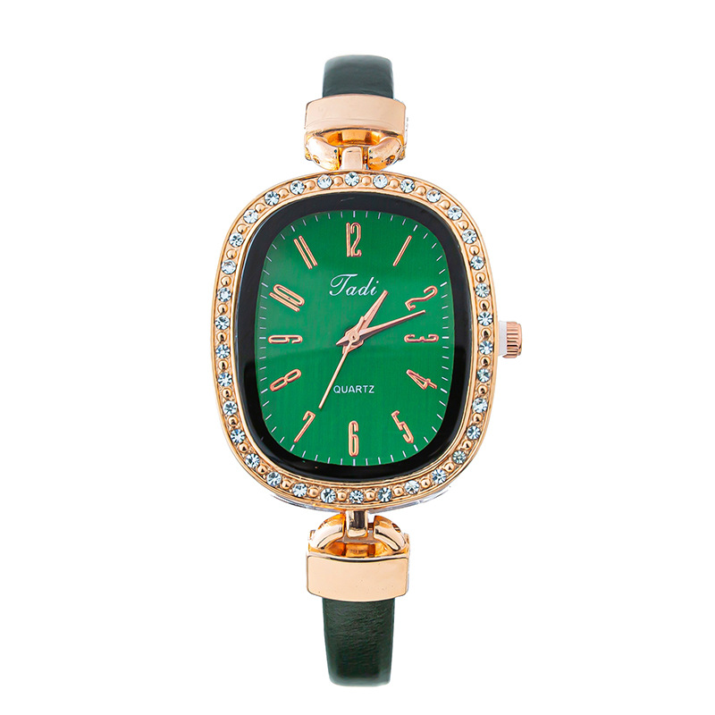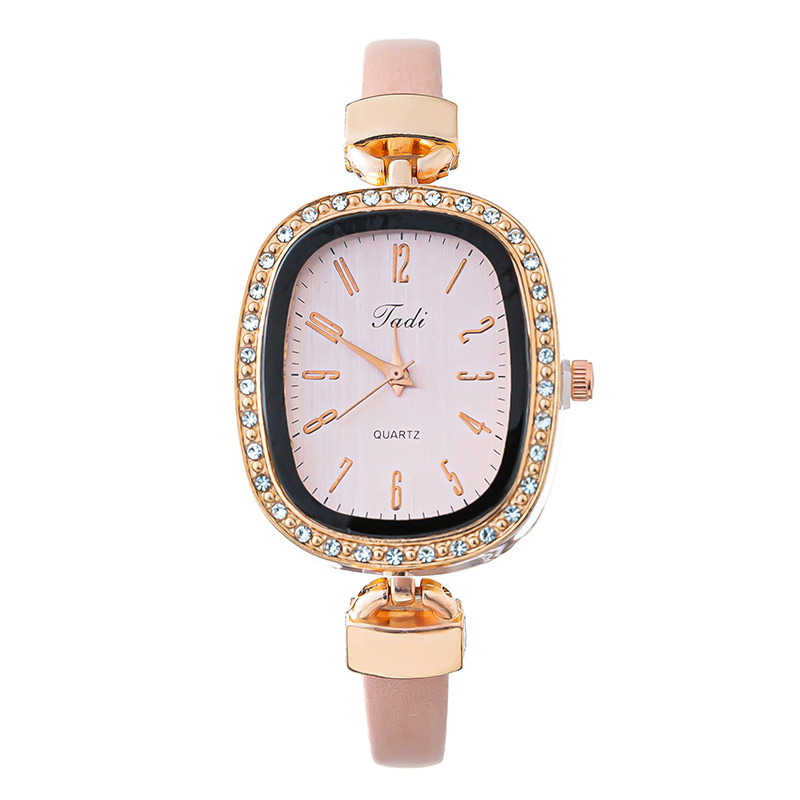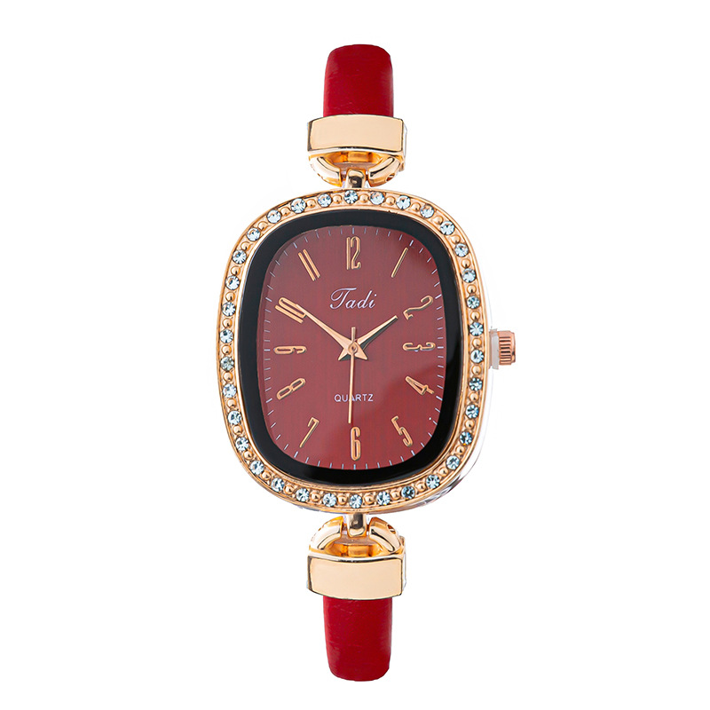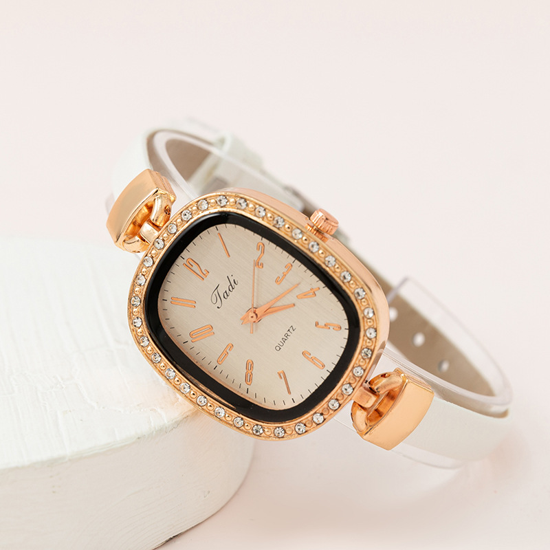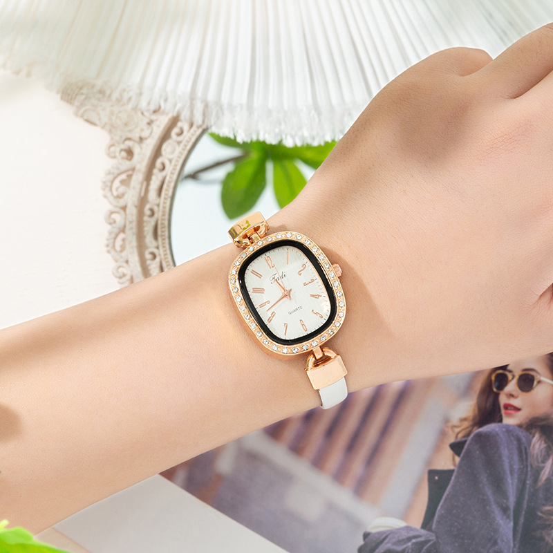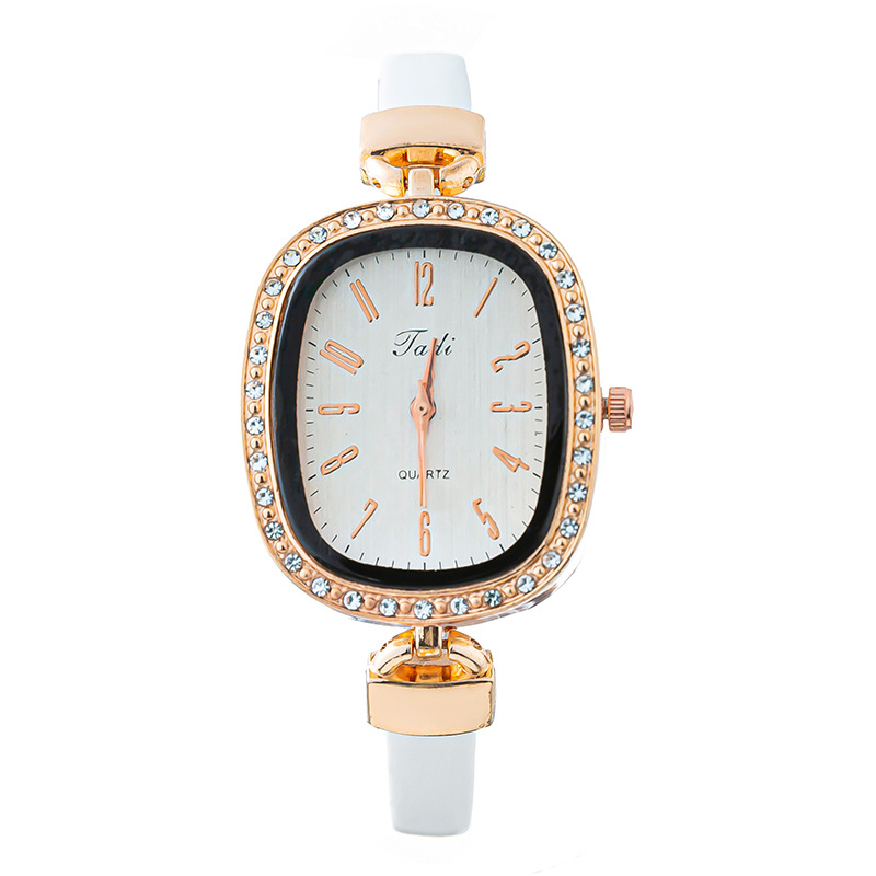 轻奢时尚椭圆形镶钻 数字面盘 优雅气质石英皮带手腕表网红款