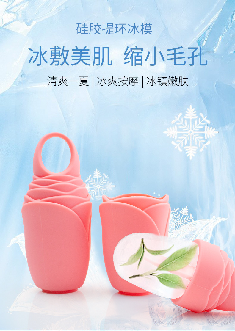 新品敷脸冰模玫瑰脸部冰敷仪ice roller提环冰敷滚轮硅胶敷脸冰格