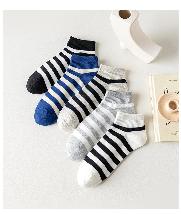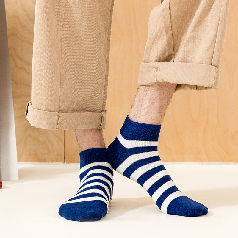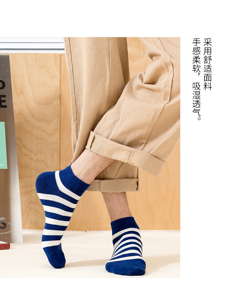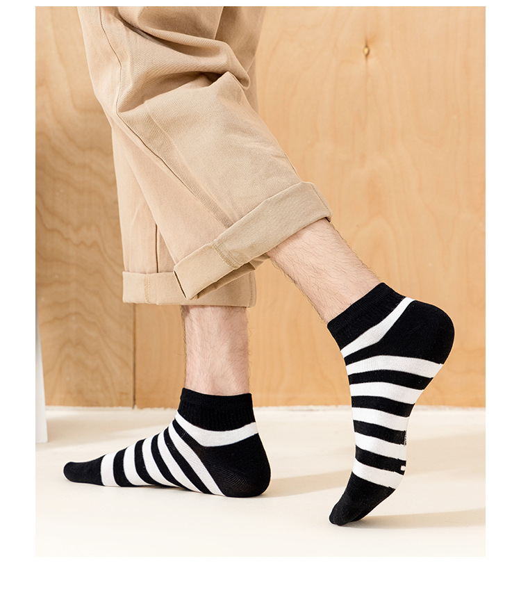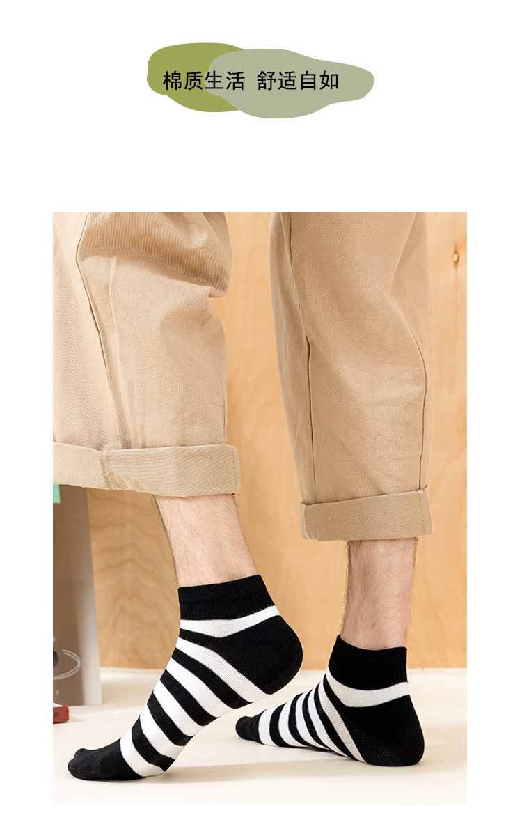 袜子男新款春夏条纹男袜棉质运动男士船袜吸汗黑白短款男式袜子 English | 投诉