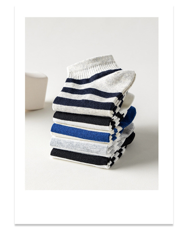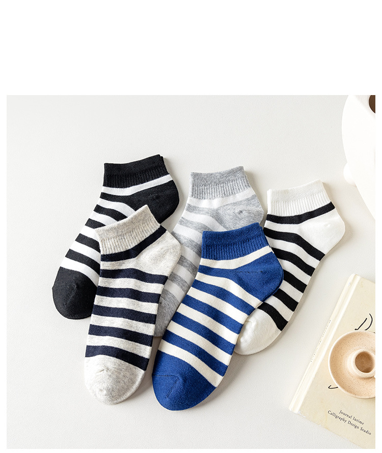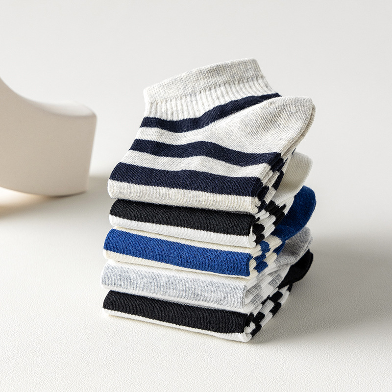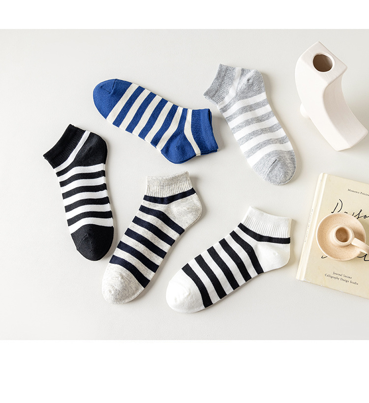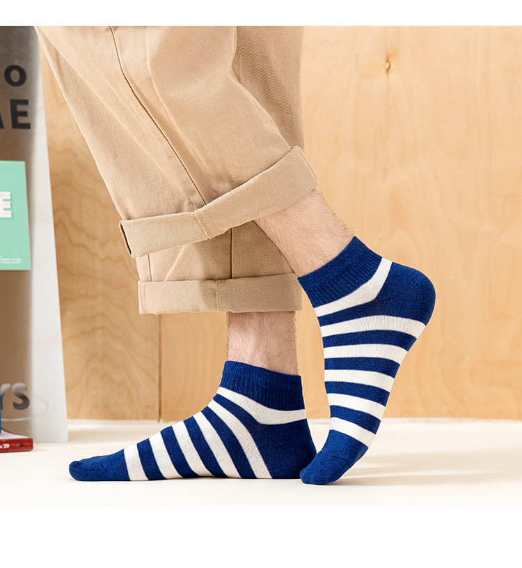 袜子男新款春夏条纹男袜棉质运动男士船袜吸汗黑白短款男式袜子 English | 投诉