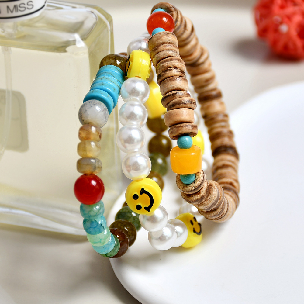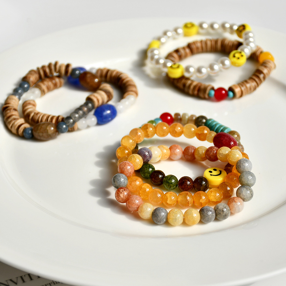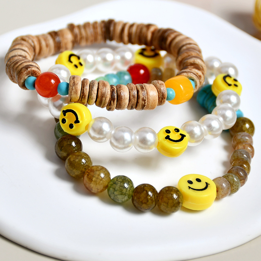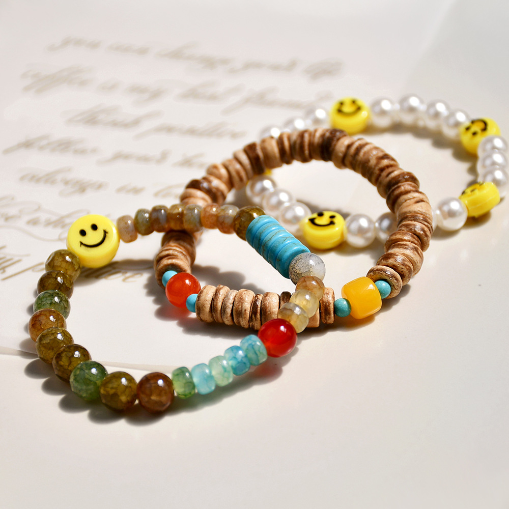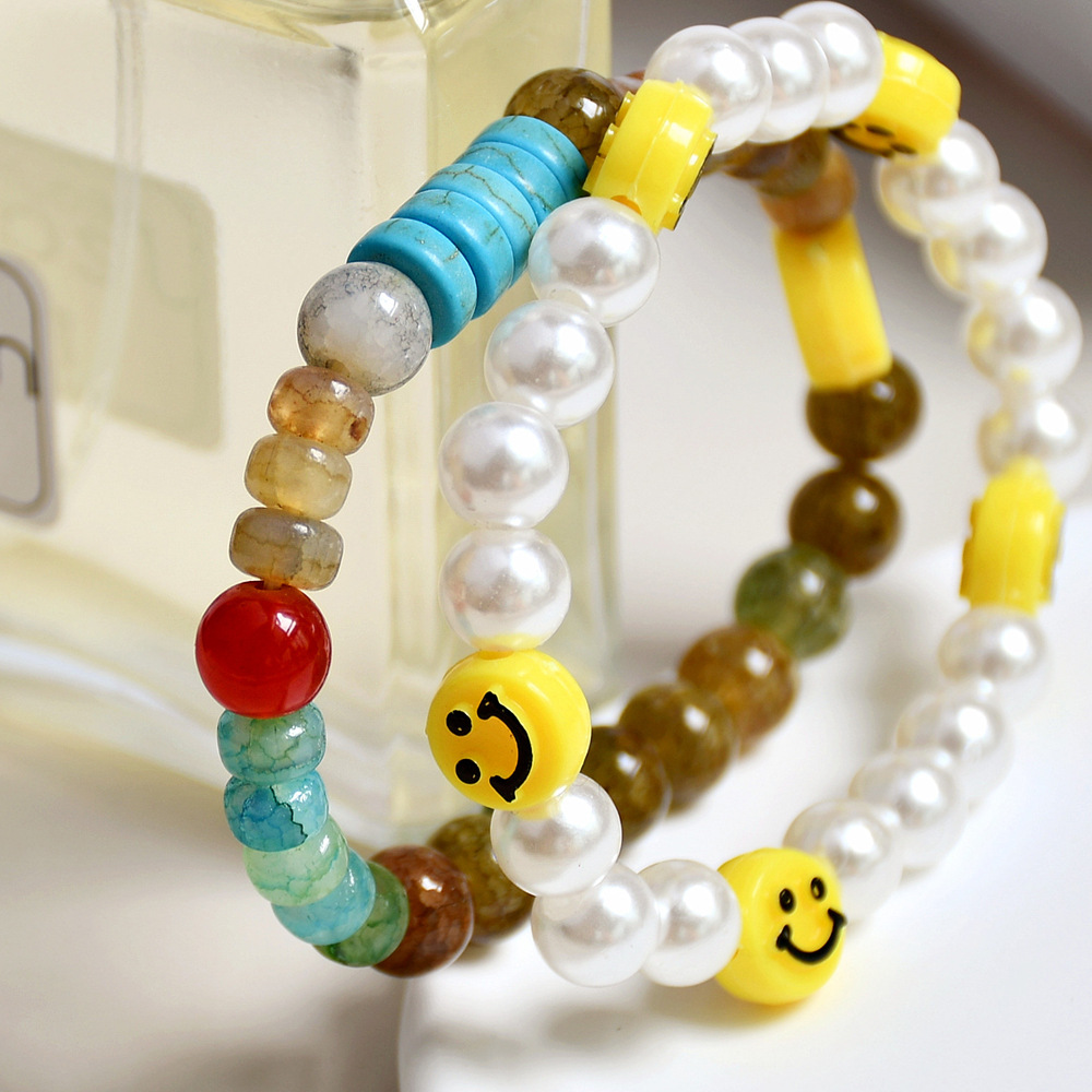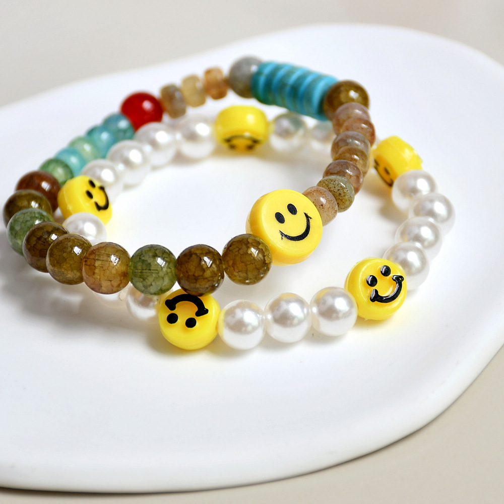 文艺复古绿幽灵水晶手串小众设计ins风珍珠笑脸串珠手链组合套装 English | 投诉