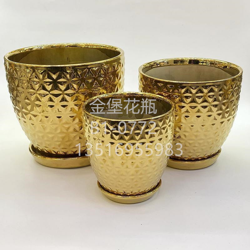 北欧大口径电镀拉丝金色大花盆圆形陶瓷植物器皿花盆家居户外摆件 English | 投诉