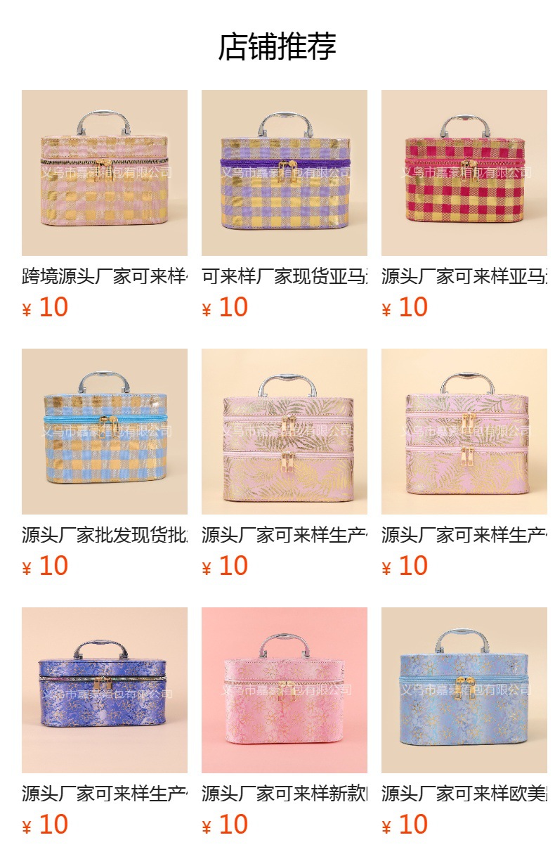 • 义乌嘉豪箱包有限公司市是集生产、加工、销售为一体的现代化企业,商铺坐落于义乌国际商贸城4区75号门2楼1街34301,主营化妆箱包,收纳箱,化妆包,竭诚为您服务,欢迎采购!