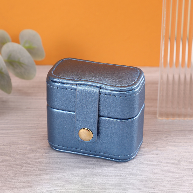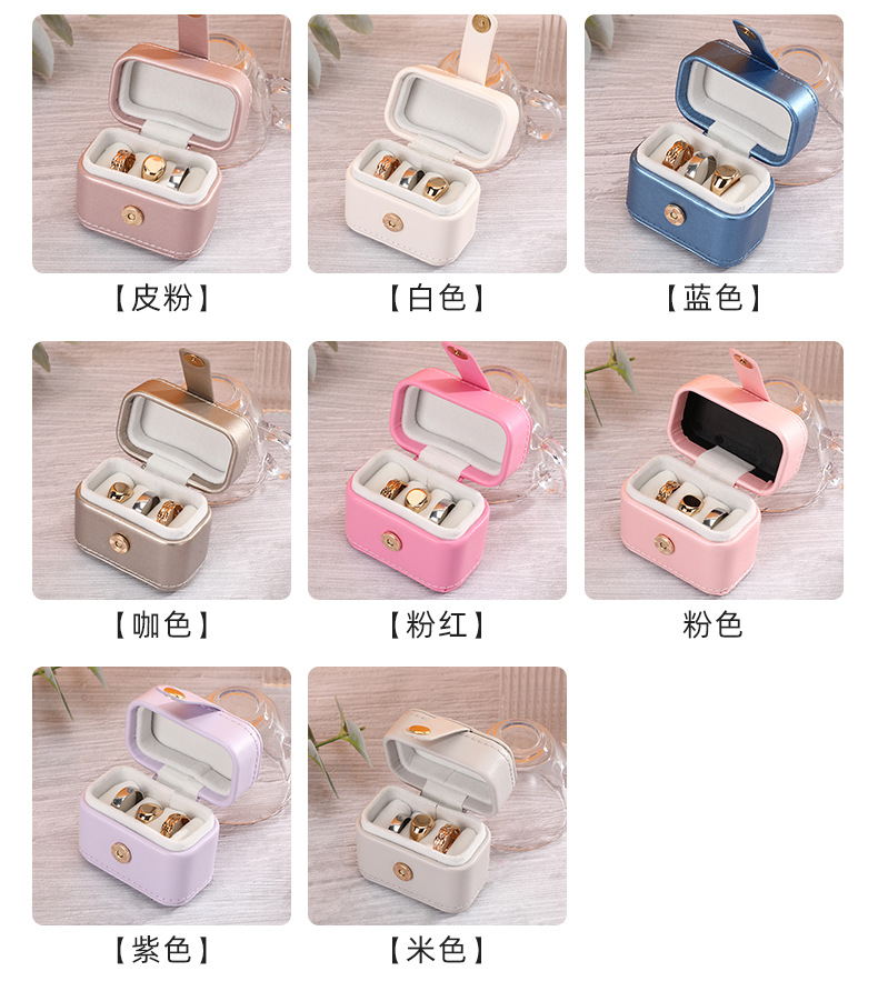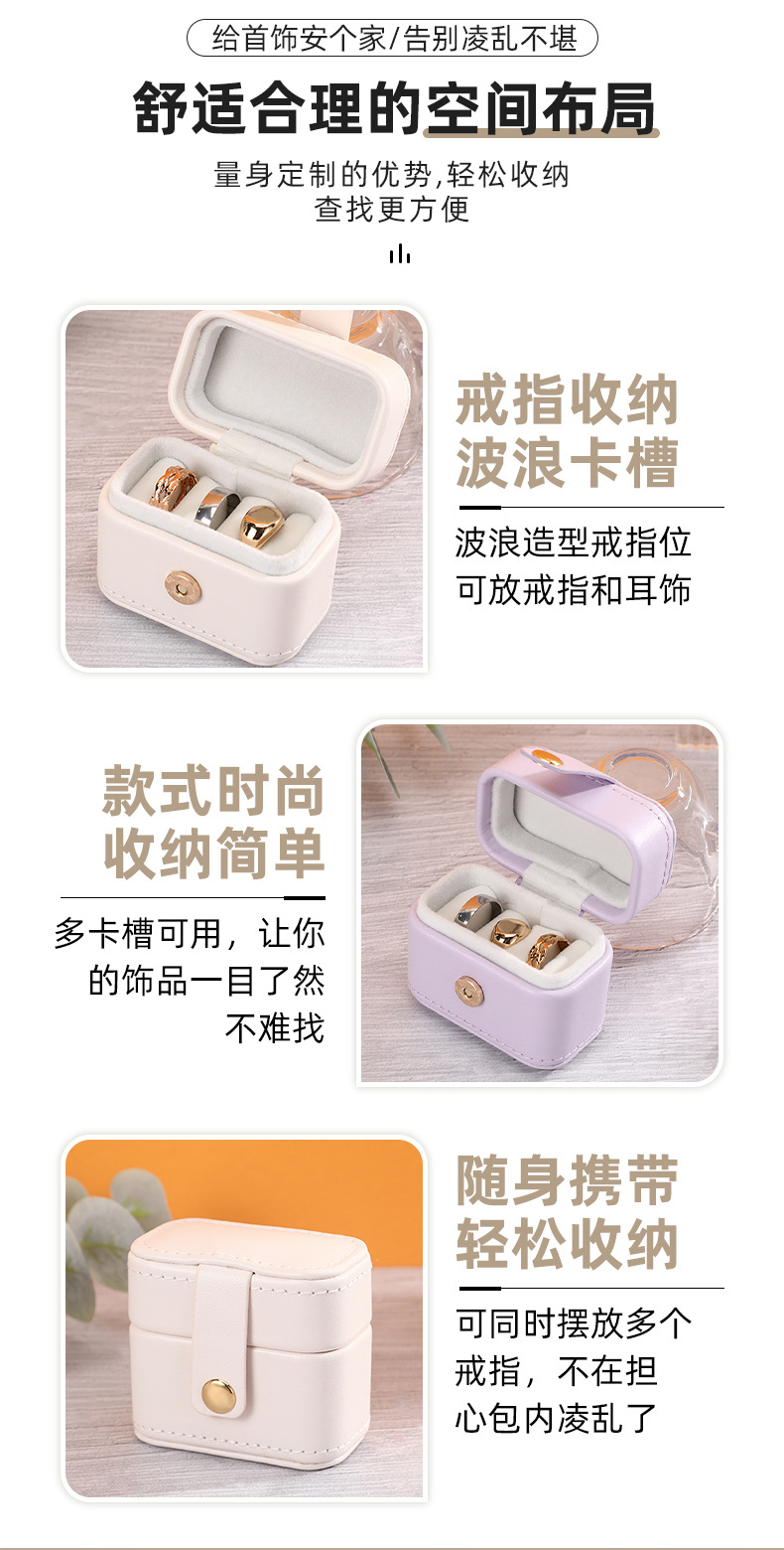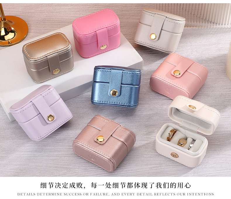 瑾奇新款ins风纯色PU皮质戒指首饰包装盒 迷你小巧防尘珠宝收纳盒