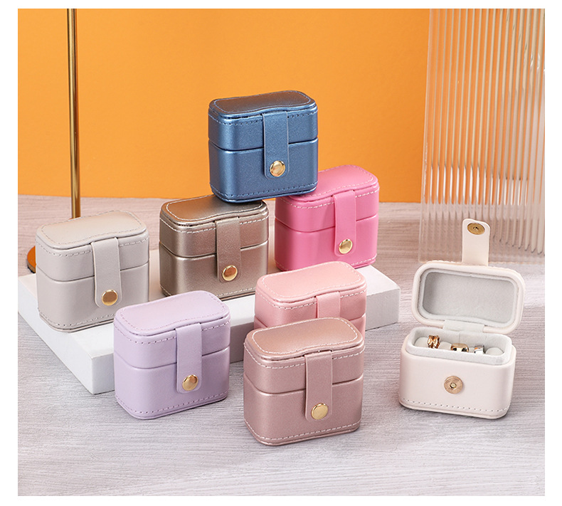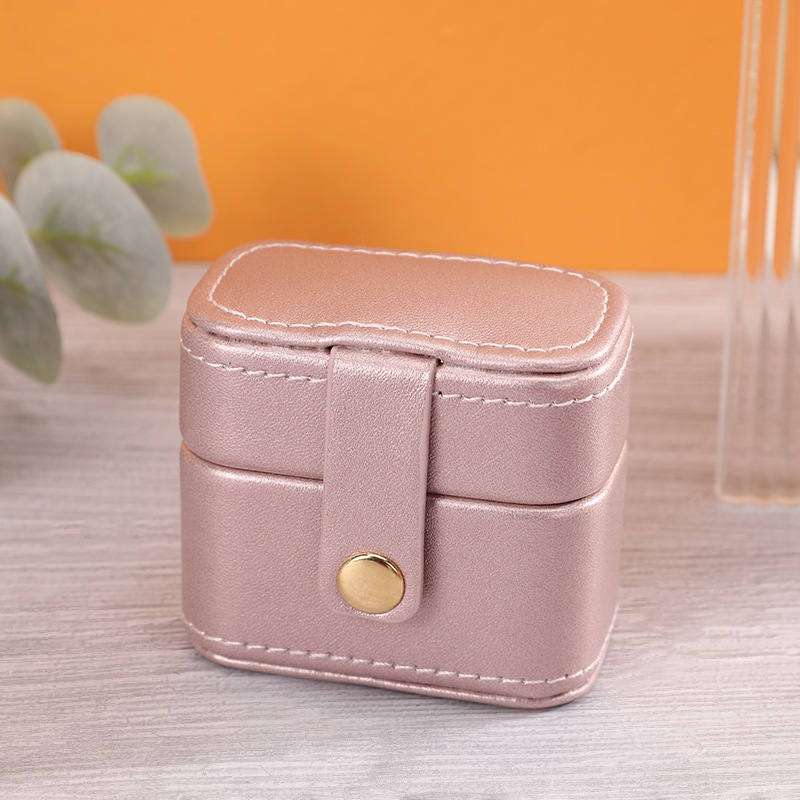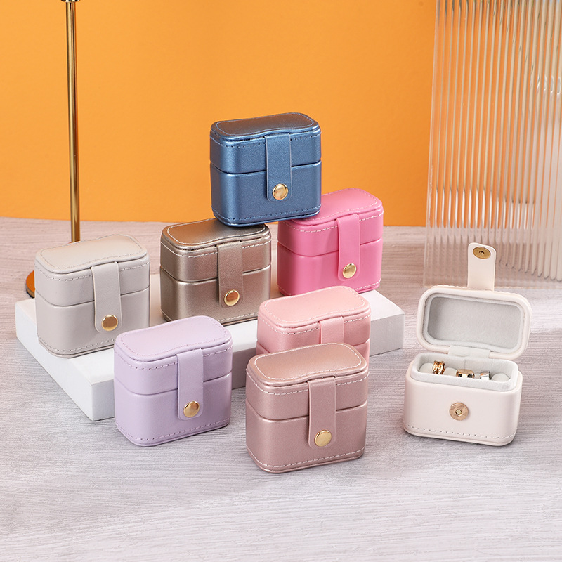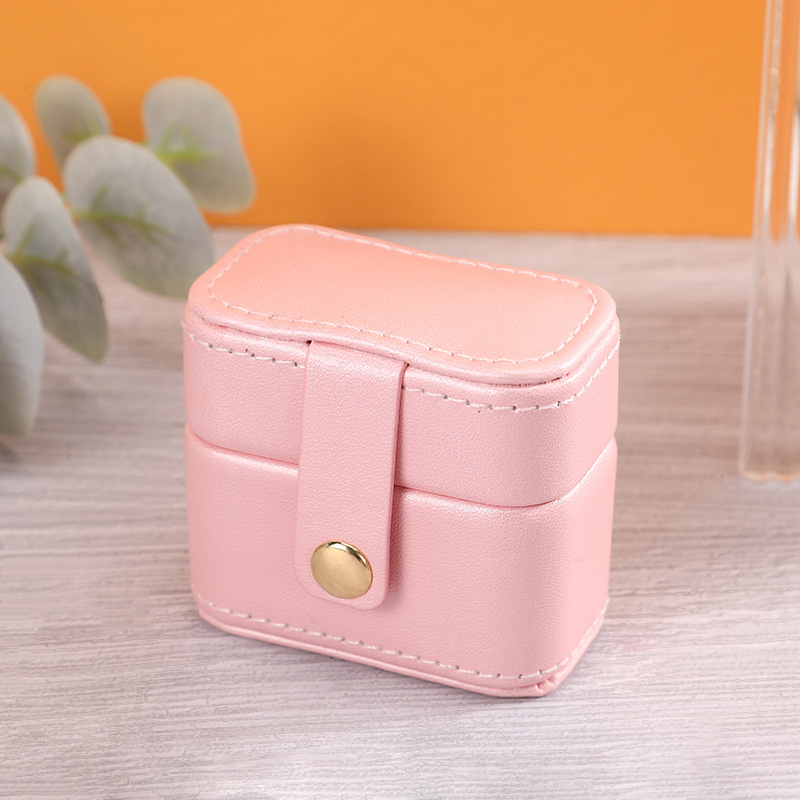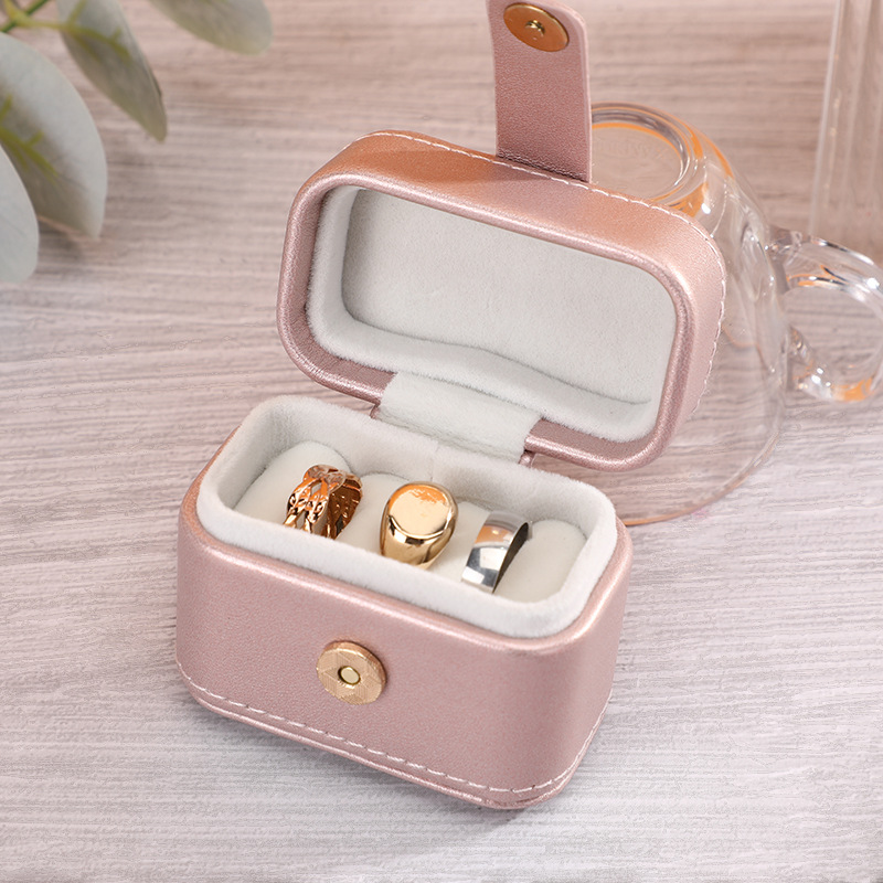 瑾奇新款ins风纯色PU皮质戒指首饰包装盒 迷你小巧防尘珠宝收纳盒