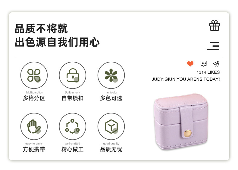 瑾奇新款ins风纯色PU皮质戒指首饰包装盒 迷你小巧防尘珠宝收纳盒 English | 投诉