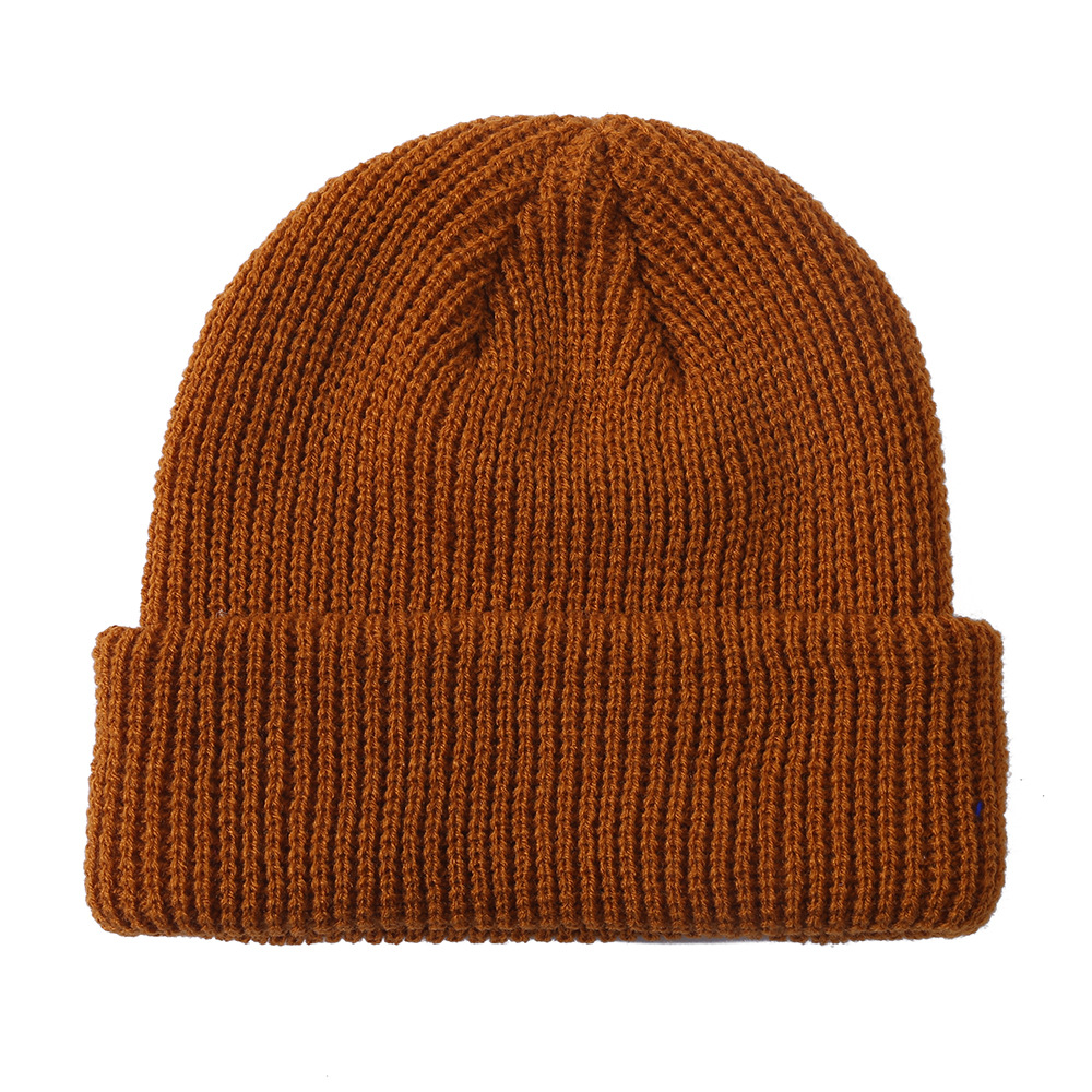 2023针织帽女新款保暖瓜皮帽纯色复古毛线圆顶帽短款户外秋冬帽子