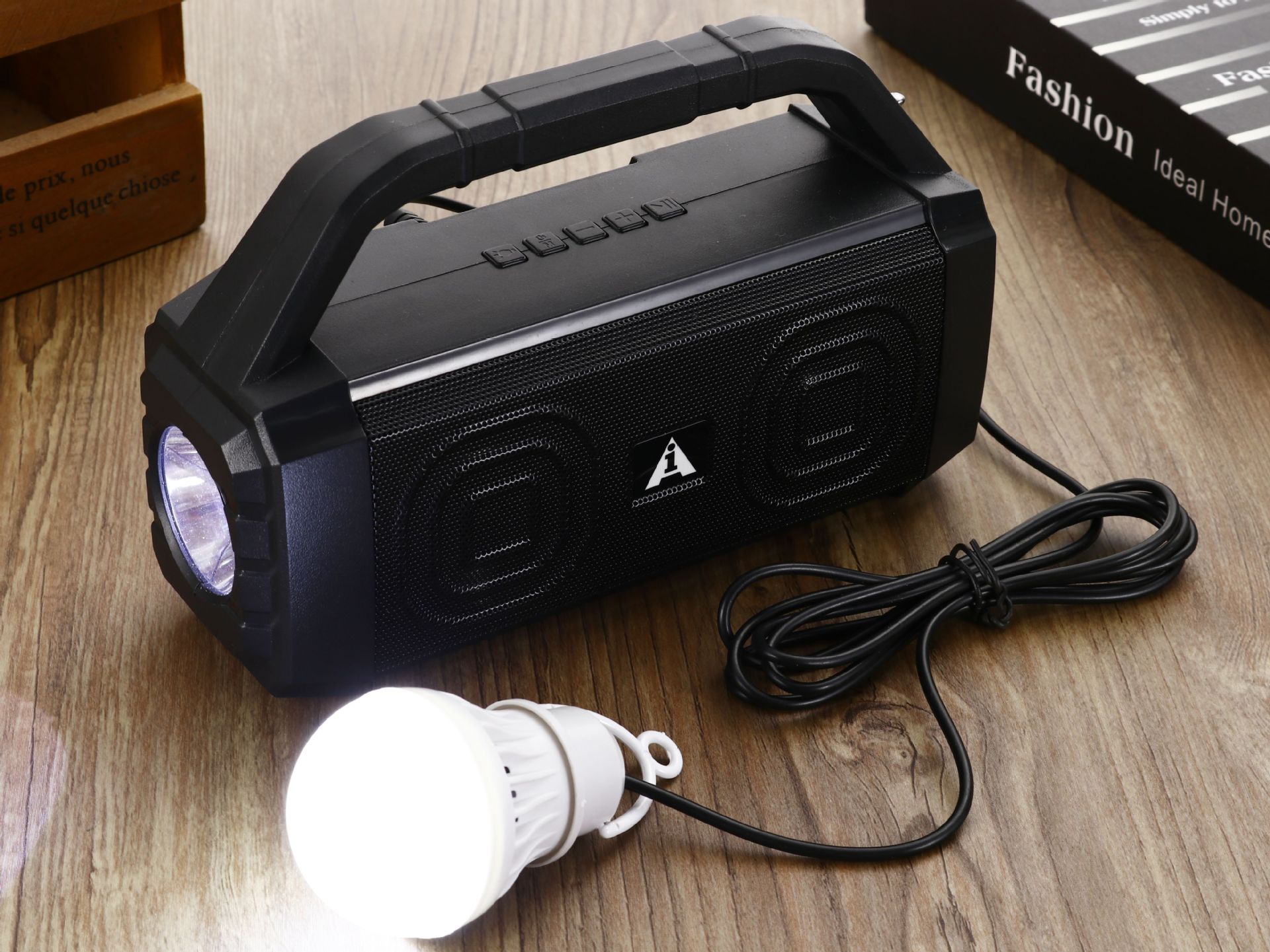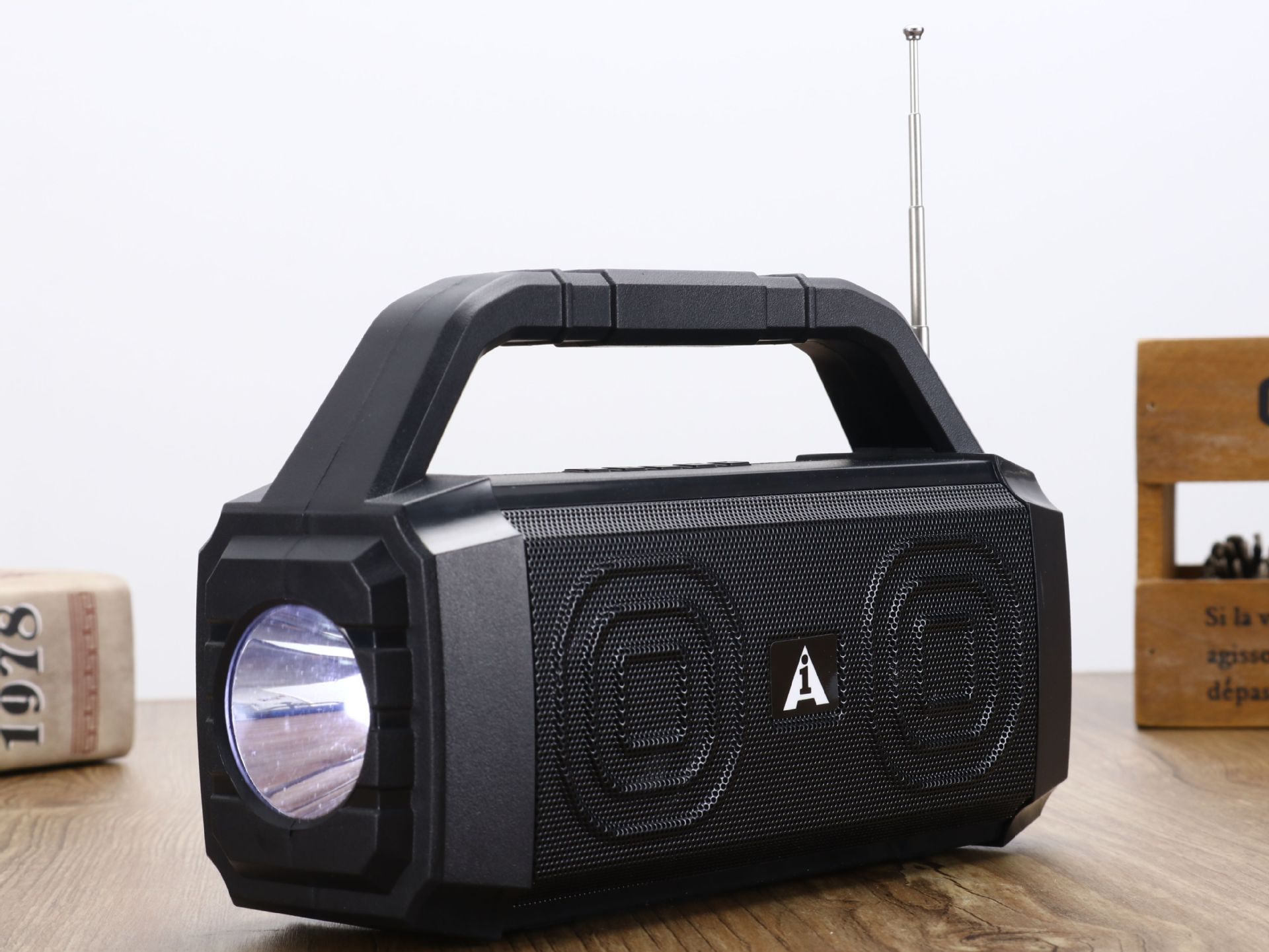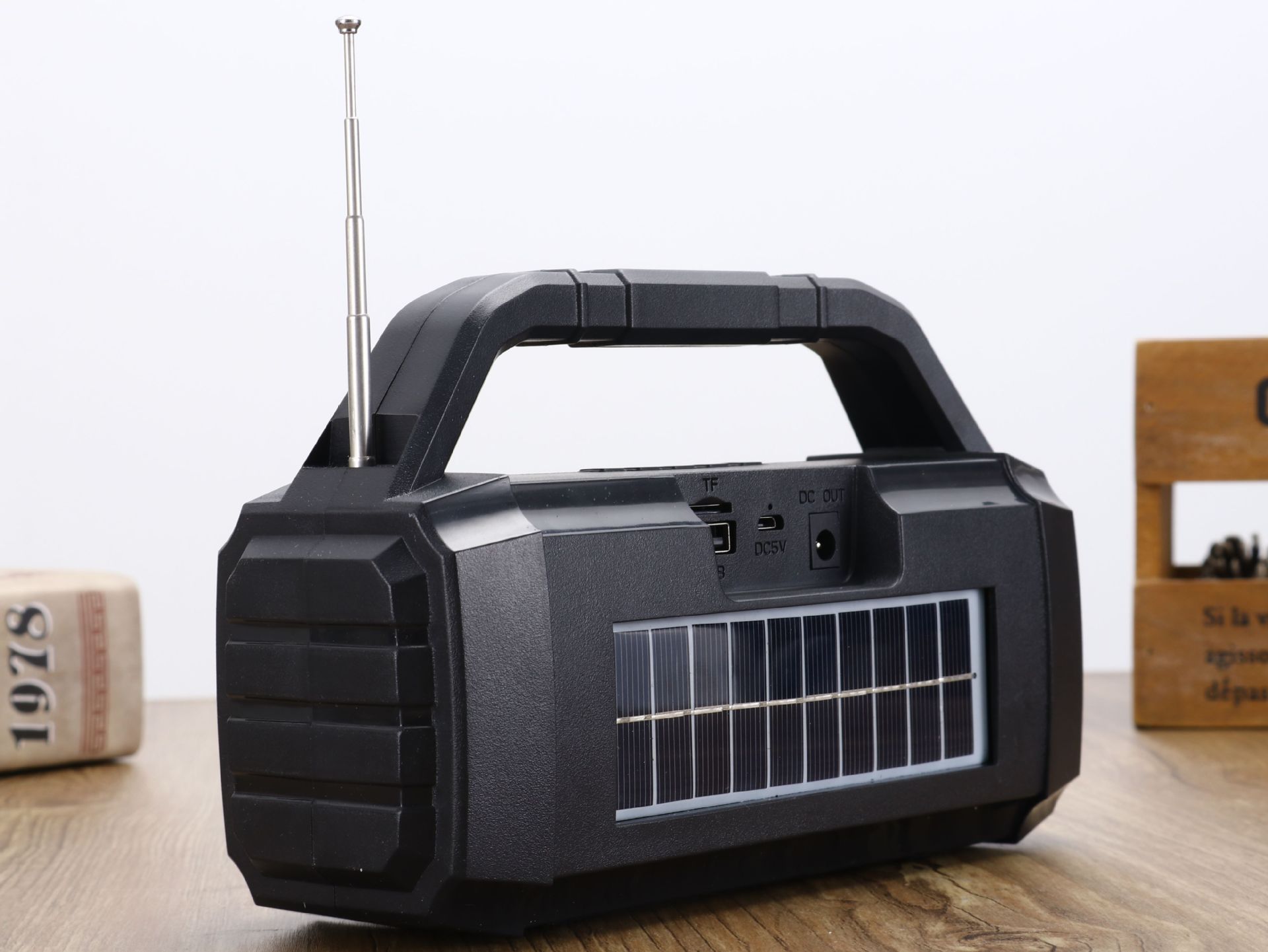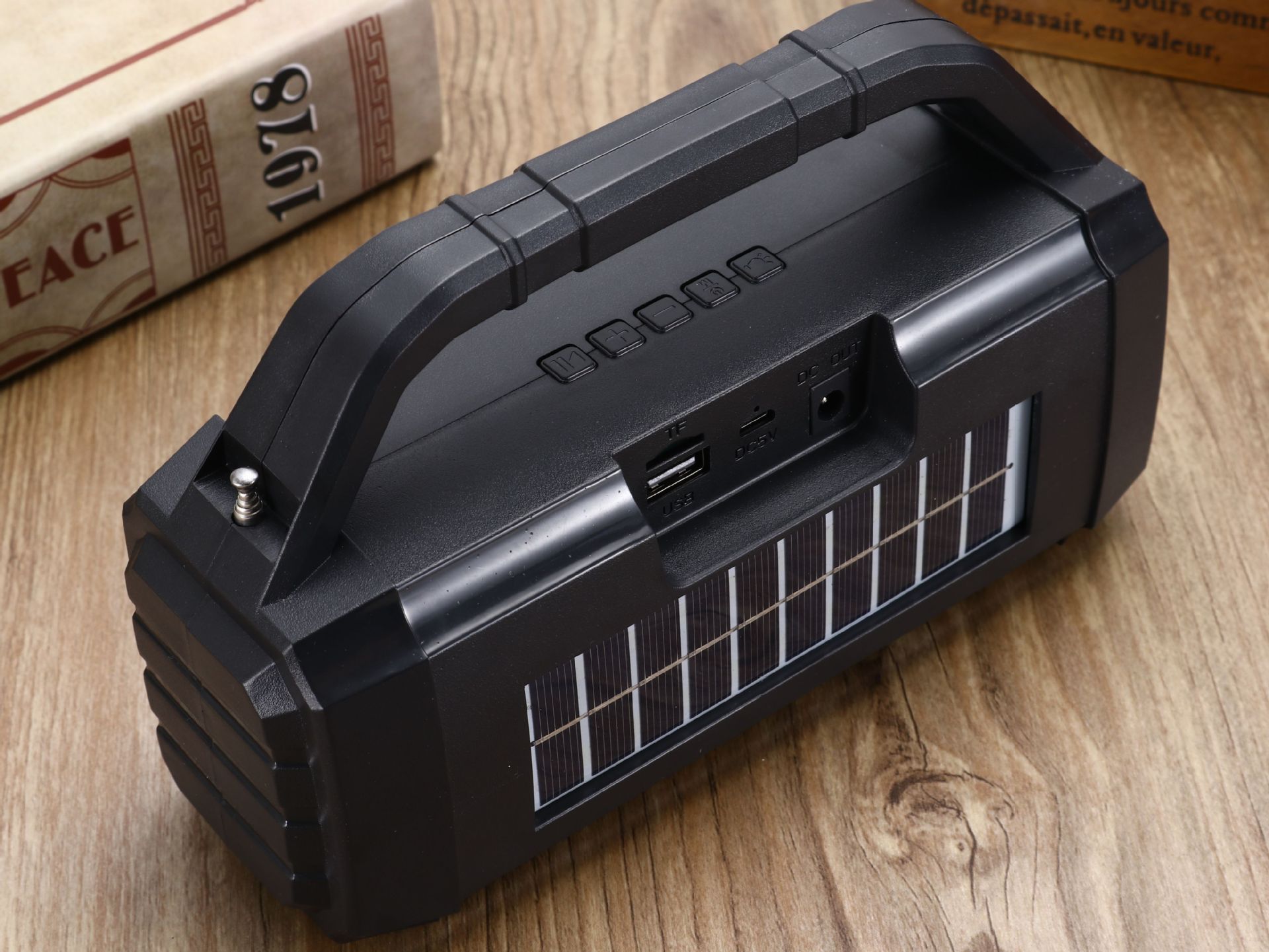 太阳能家用无线蓝牙小音响车载移动便携手电筒【插卡+U盘】 English | 投诉