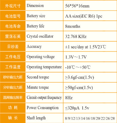 分针扭力: 大于等于3.6(gf - cm)/1.5V电压