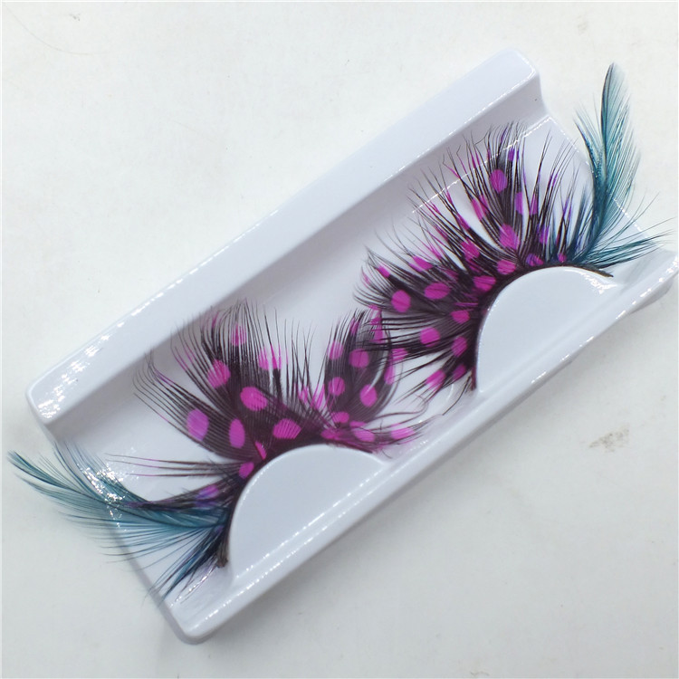 炫彩彩色羽毛假眼睫毛棉线黑色羽毛眼睫毛厂家供应化妆舞会