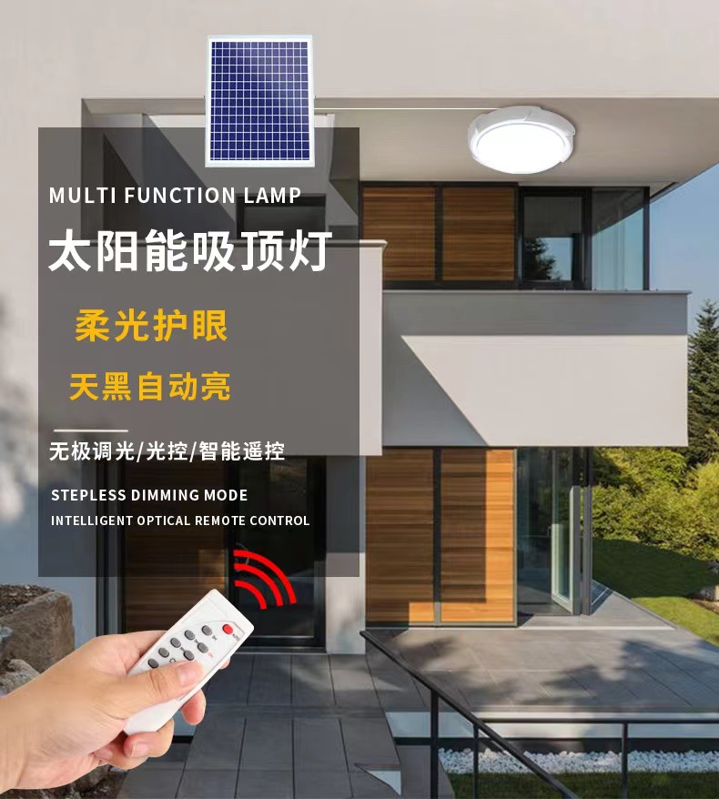 新款太阳能吸顶灯跨境热销家用室内卧室照明灯阳台客厅LED太阳能 English | 投诉