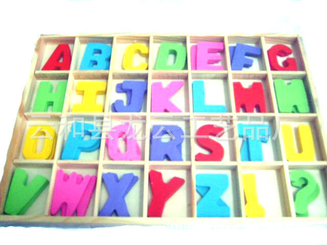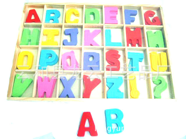 【产品说明】:一共有两套字母,共56个。宝宝几个月时可以让宝宝练习抓拿锻炼,色彩艳丽的字母一定会引起宝宝的兴趣。宝宝梢大一些时,可帮助宝宝随意进行字母配对,让宝宝将相同的字母配对,锻炼宝宝的形象观察能力。宝宝再大一些时,就可以让宝宝联系拼音组合了。从a到z共26个字母,可以任意编排,任意选择,潜移默化中,宝宝很快就会对字母产生强烈的兴趣,让抽象、枯燥的字母学习,变成宝宝喜爱的具体的、形象的字母积木游戏!