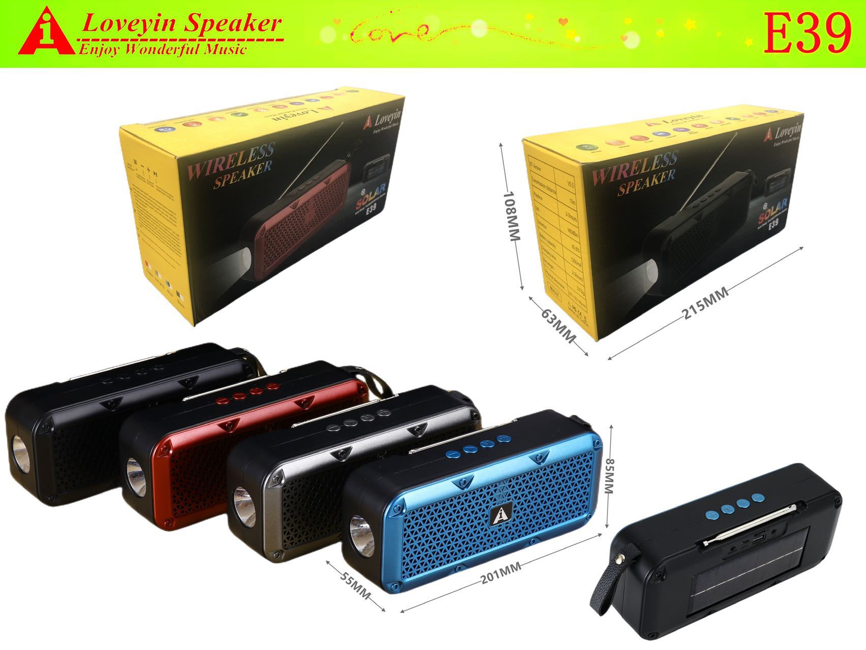 新款E39太阳能蓝牙FM收音机音箱带手电露营骑行小音响