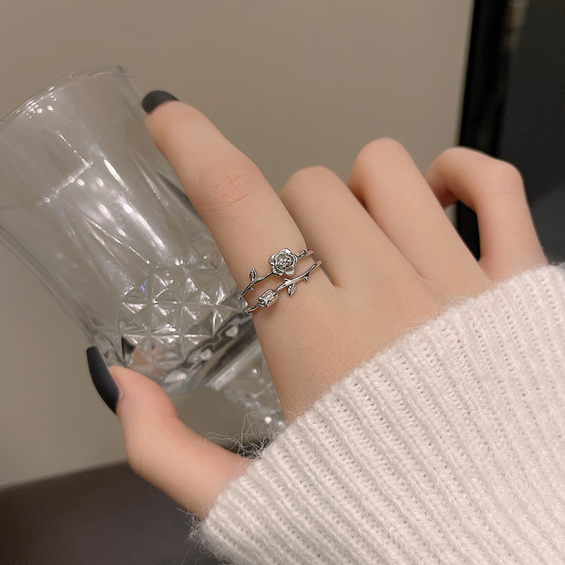 双层玫瑰戒指女ins简约气质小众轻奢设计食指戒2023年新款潮指环 English | 投诉