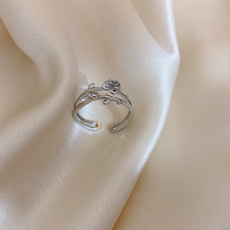 双层玫瑰戒指女ins简约气质小众轻奢设计食指戒2023年新款潮指环