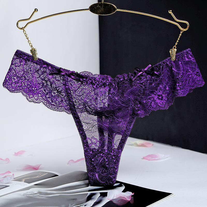 棉质底档布一片式网纱透气内裤女 性感蕾丝丁字女士低腰T字裤 投诉