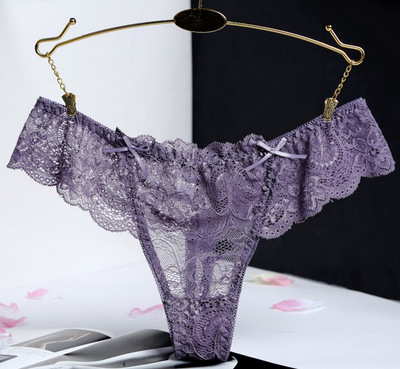 棉质底档布一片式网纱透气内裤女 性感蕾丝丁字女士低腰T字裤