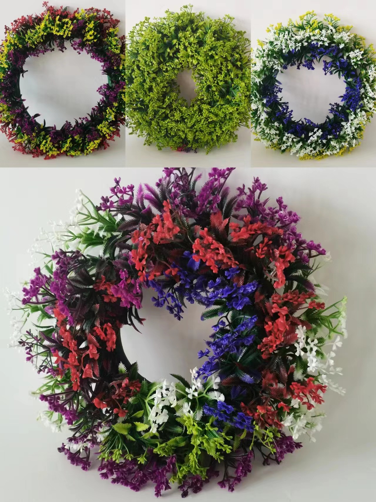 仿真假花圣诞花环塑料草环婚庆家居装饰门环心形草花圈亚马逊爆款