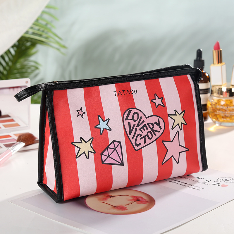 跨境日韩热销创意喷绘女士化妆包 旅行pu方形拉链收纳包批发