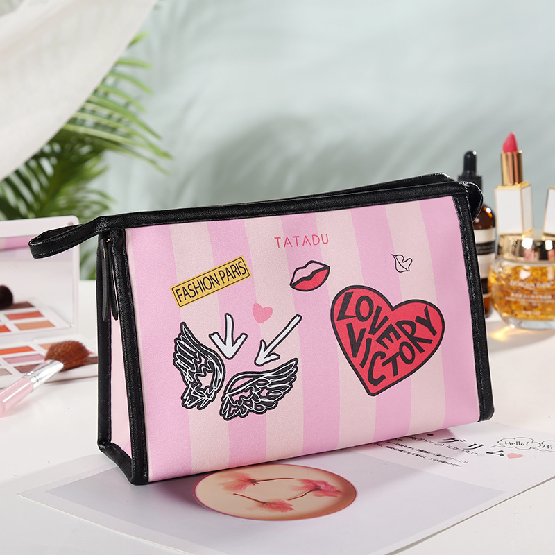 跨境日韩热销创意喷绘女士化妆包 旅行pu方形拉链收纳包批发 投诉