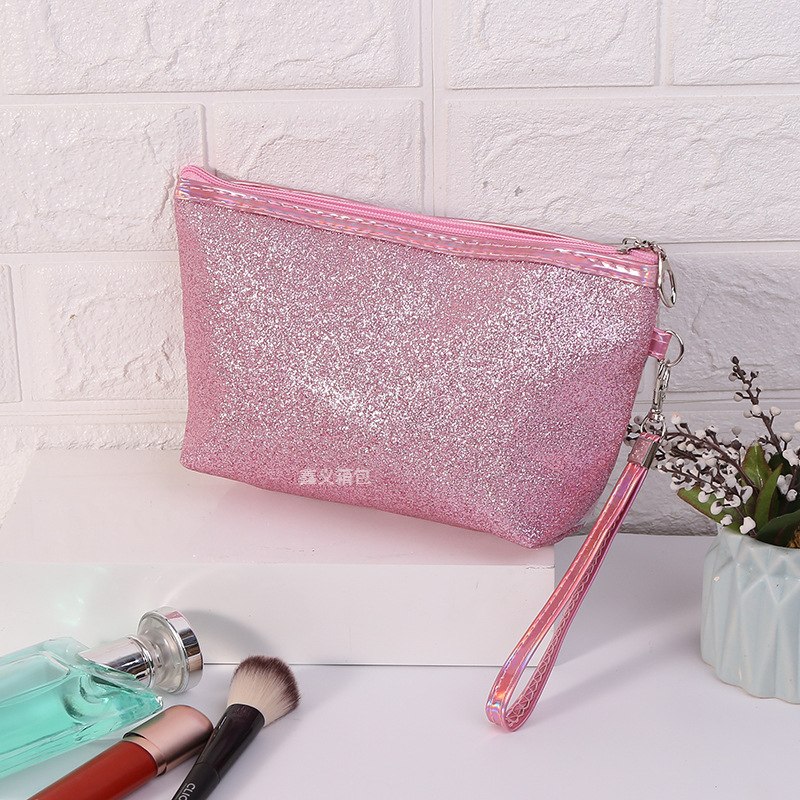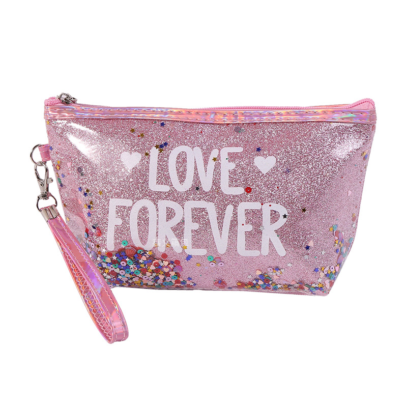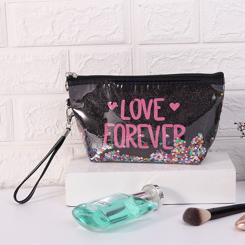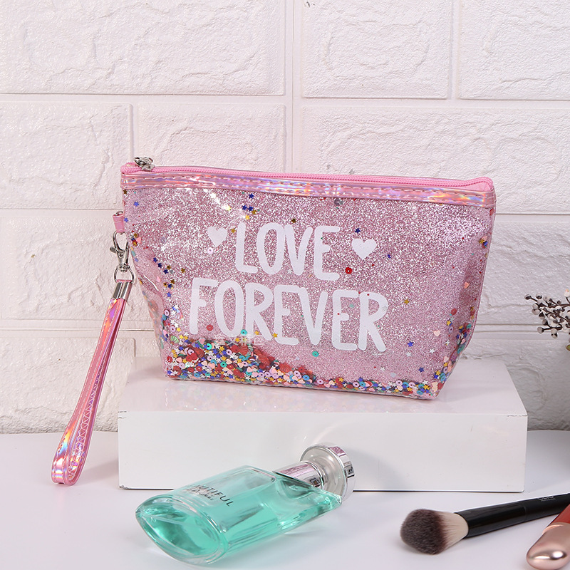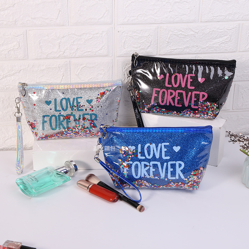 新款亮片印字母化妆包卡通化妆品洗漱旅行收纳包六角手提包可