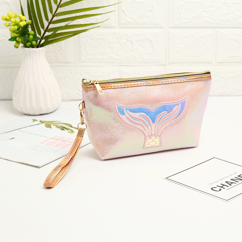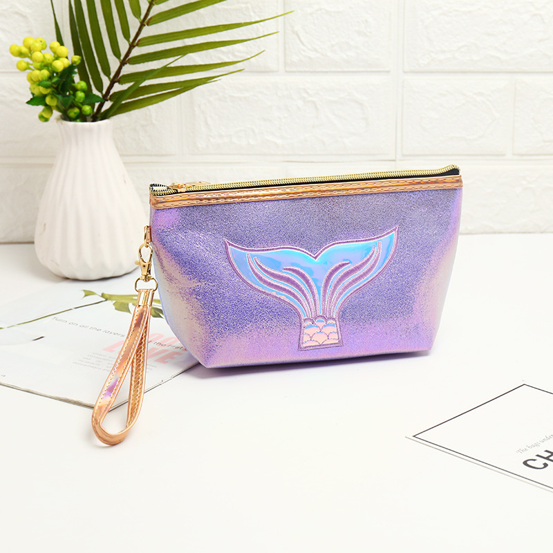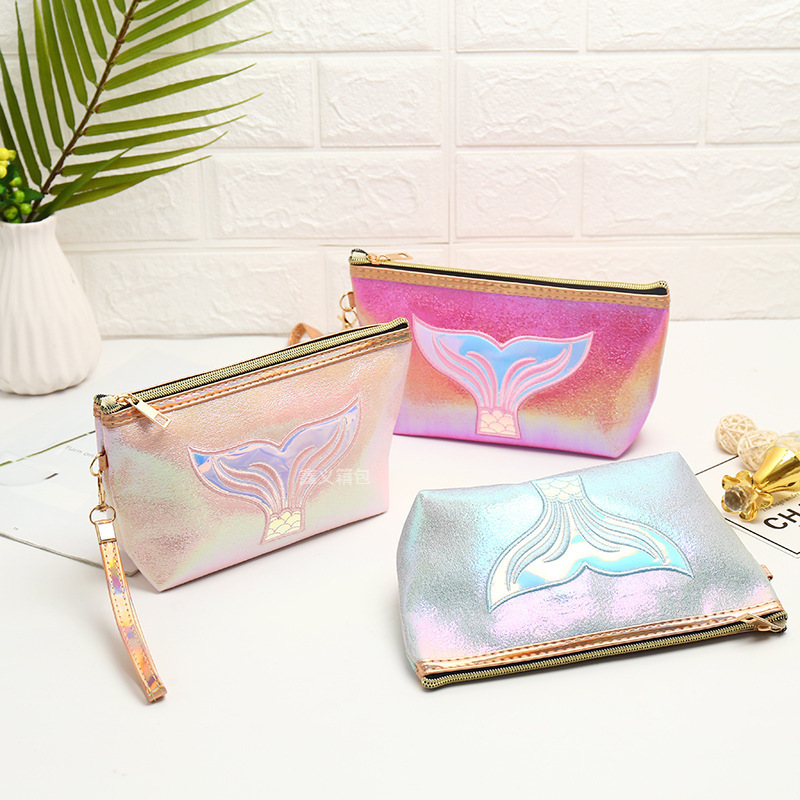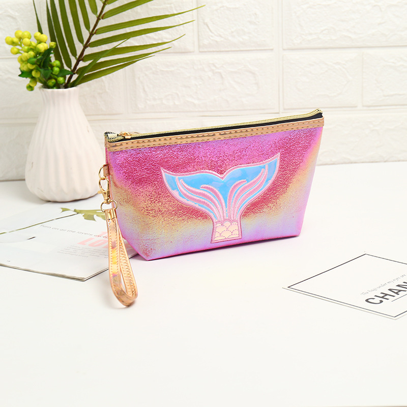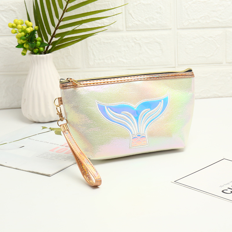 卡通鱼尾镭射化妆包创意绣花时尚大容量收纳包旅行收纳包袋洗漱包