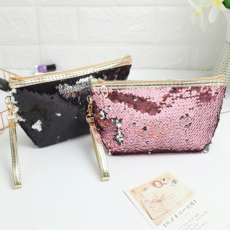 亮片化妆包收纳包手提便携可爱洗漱包旅行时尚收纳袋可