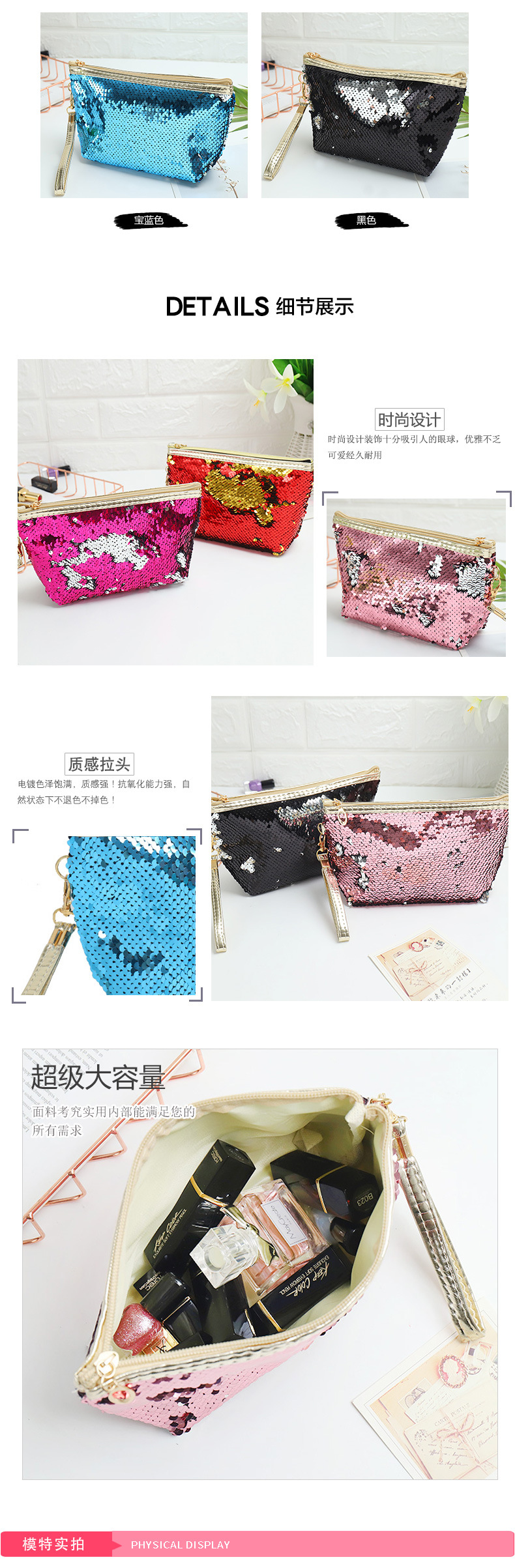亮片化妆包收纳包手提便携可爱洗漱包旅行时尚收纳袋可 投诉