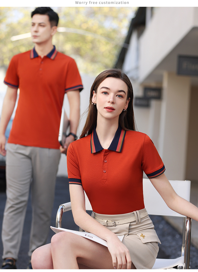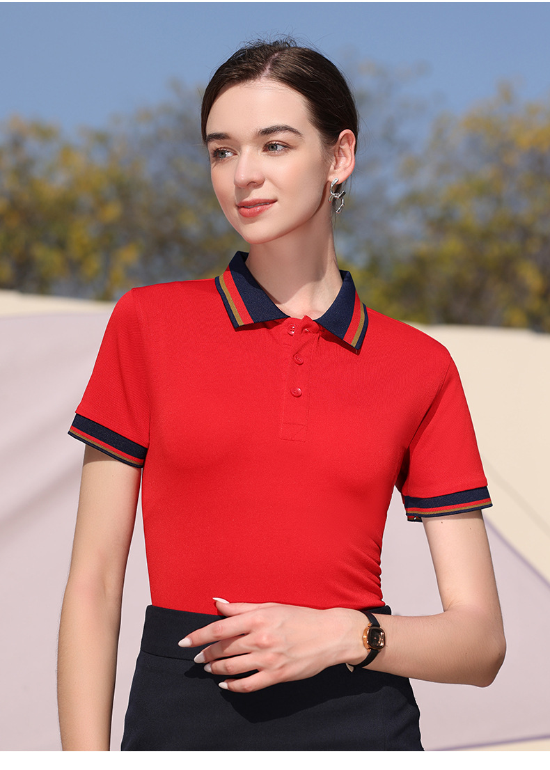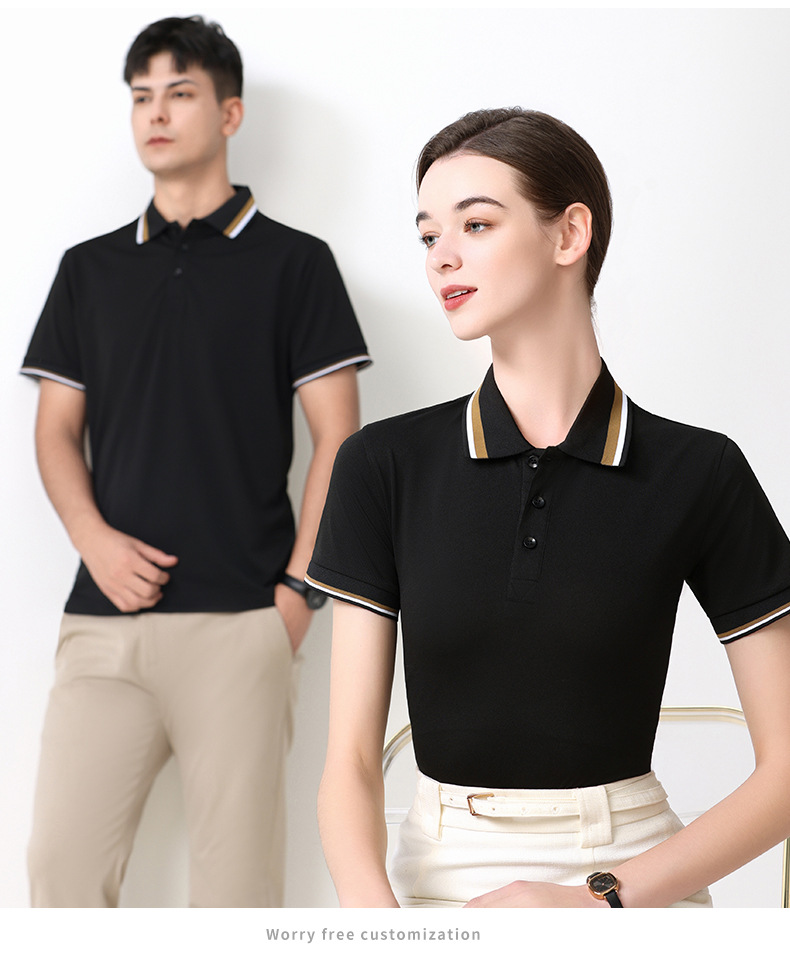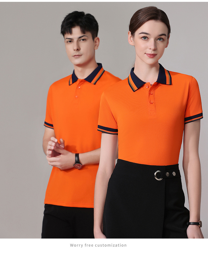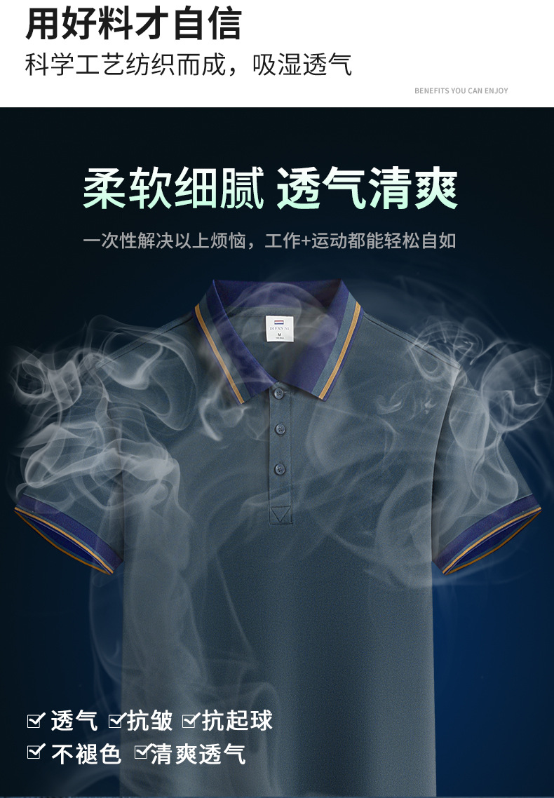 夏季新款短袖广告衫撞色宽条翻领T恤定logo工厂厂服清爽吸汗透气 投诉