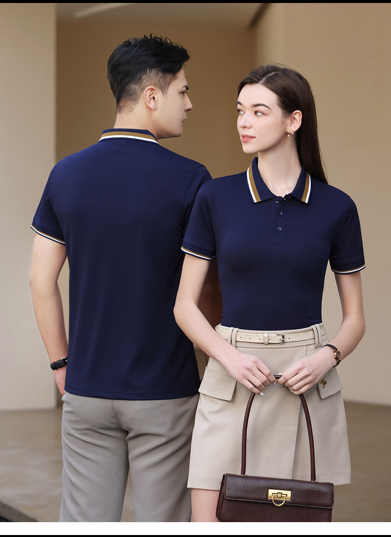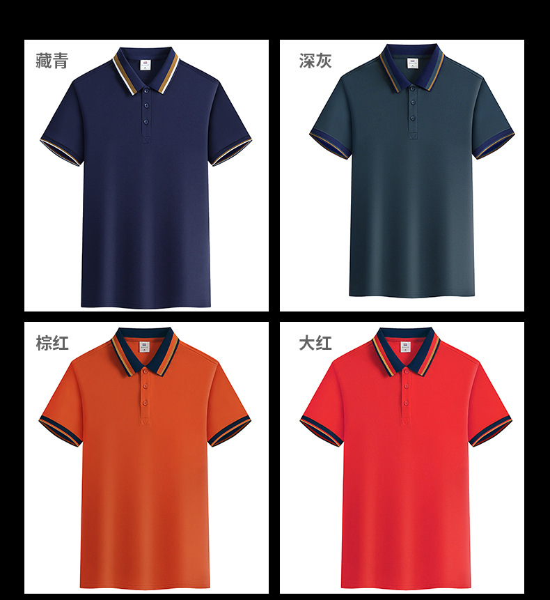 夏季新款短袖广告衫撞色宽条翻领T恤定logo工厂厂服清爽吸汗透气