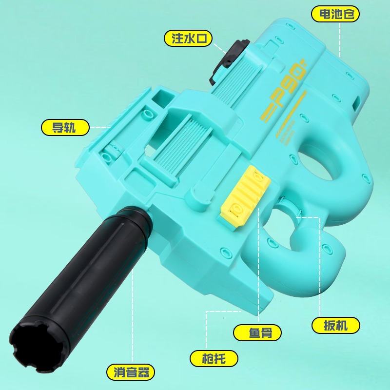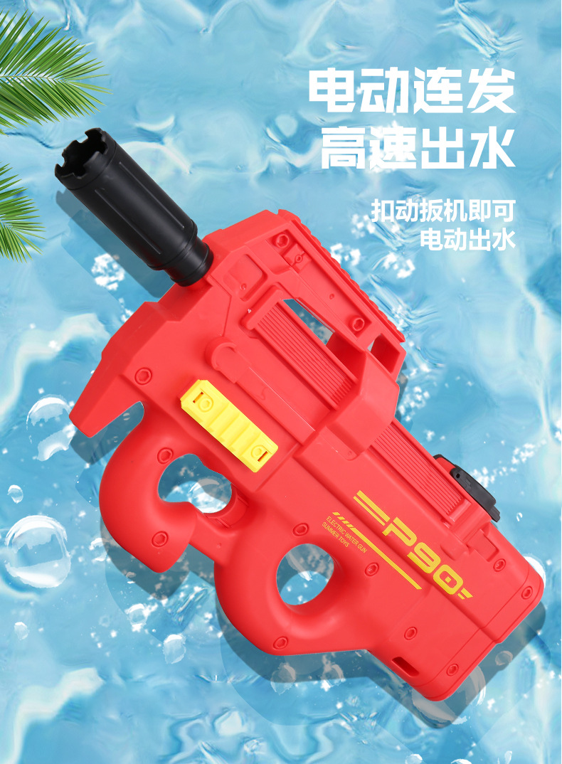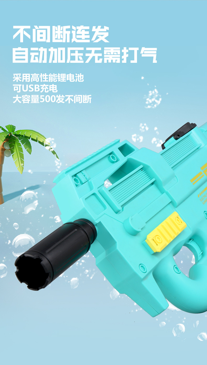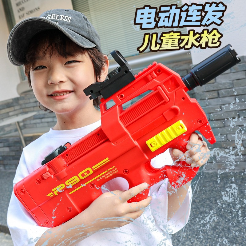 儿童电动水枪玩具P90大号大容量自动连发摆地摊海边戏水玩具批发