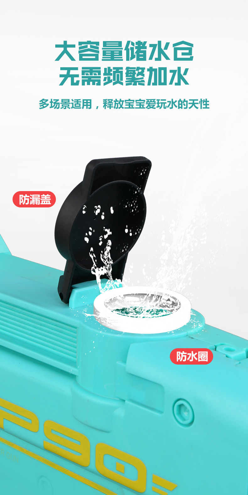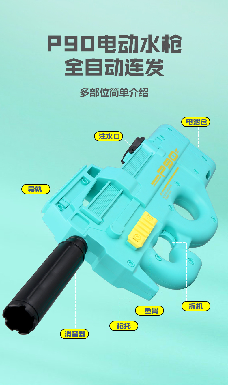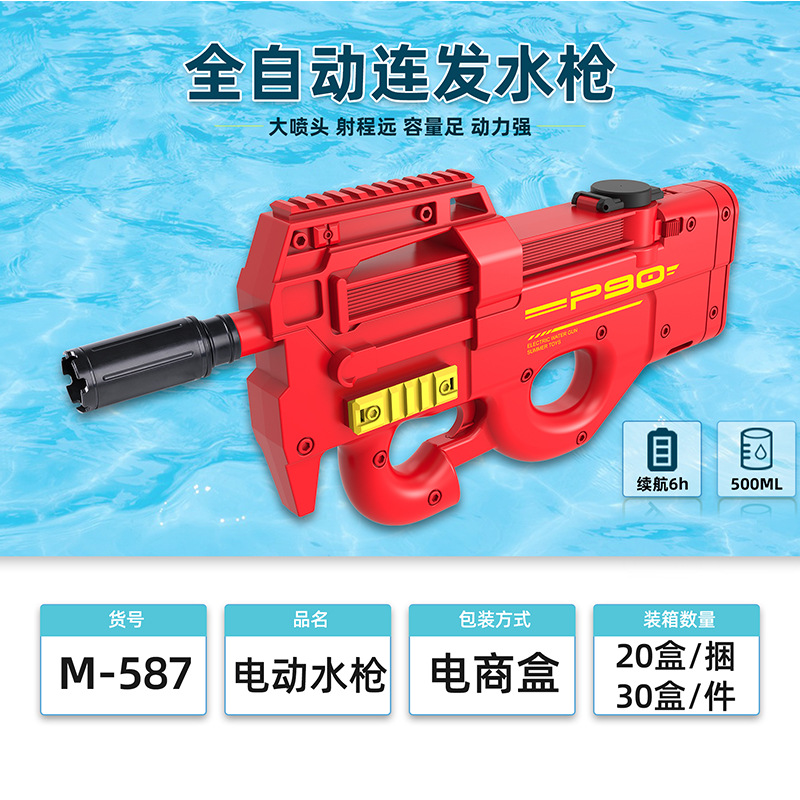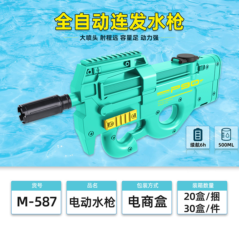 儿童电动水枪玩具P90大号大容量自动连发摆地摊海边戏水玩具批发