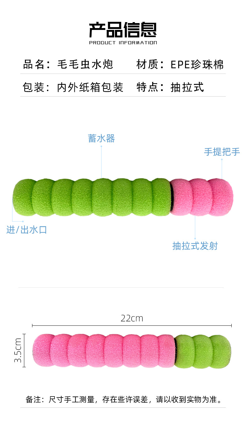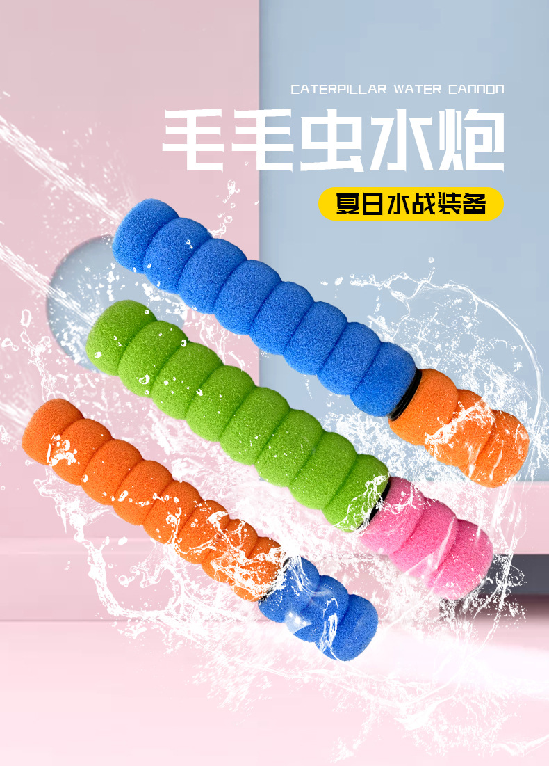 厂家货源儿童玩具户外漂流打水仗抽拉式水枪卡通直筒式毛毛虫水炮 投诉