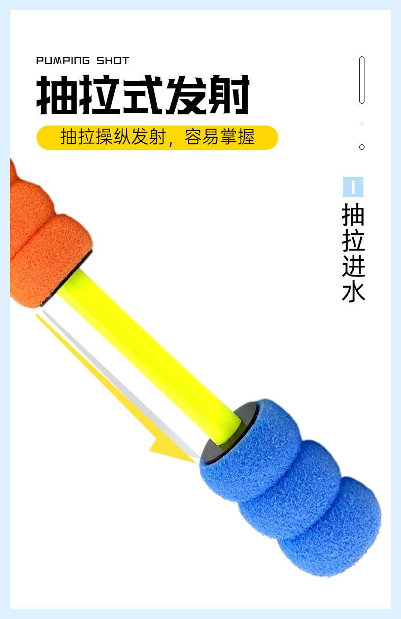 厂家货源儿童玩具户外漂流打水仗抽拉式水枪卡通直筒式毛毛虫水炮