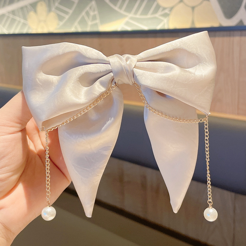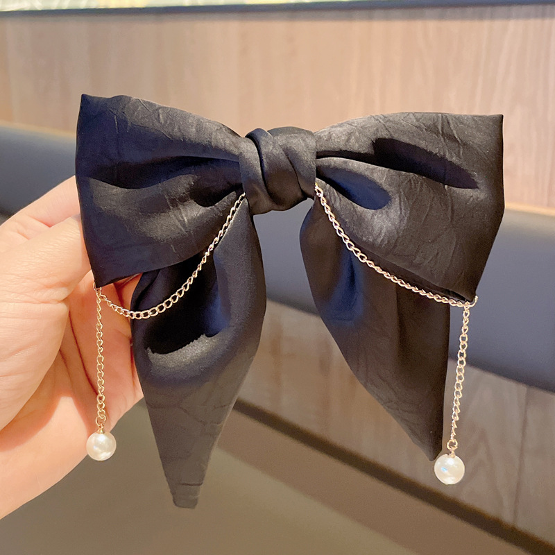 超大珍珠布艺蝴蝶结发夹韩国网红后脑勺夹子头饰发卡气质弹簧夹女 投诉