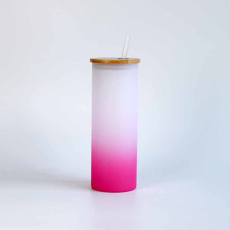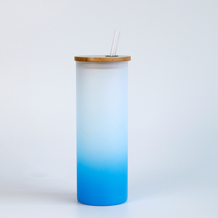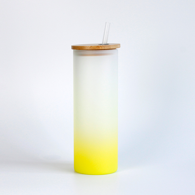 彩底渐变色热升华玻璃杯竹盖磨砂玻璃杯吸管耐高温带盖ins水杯子
