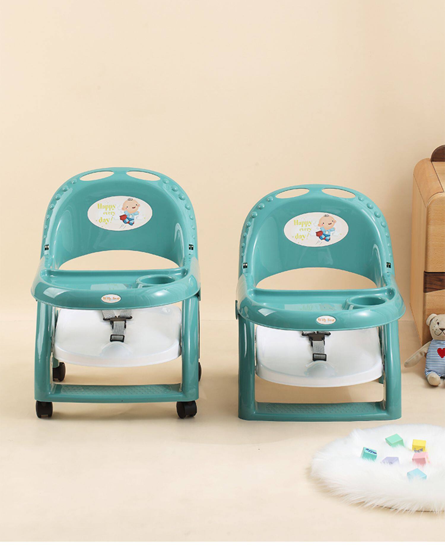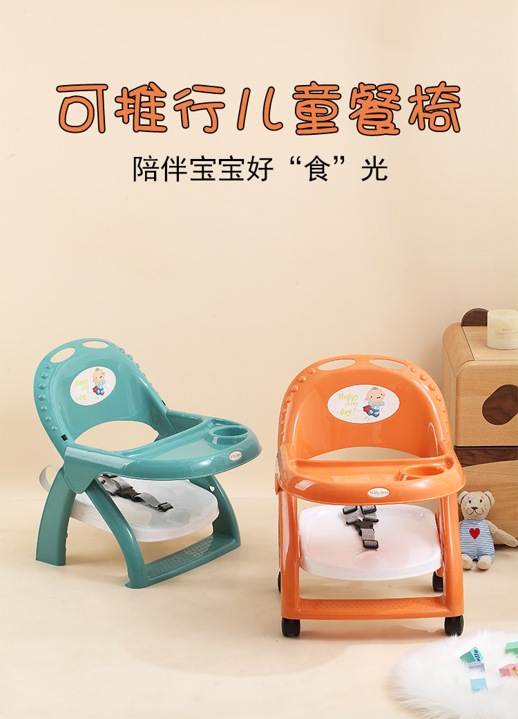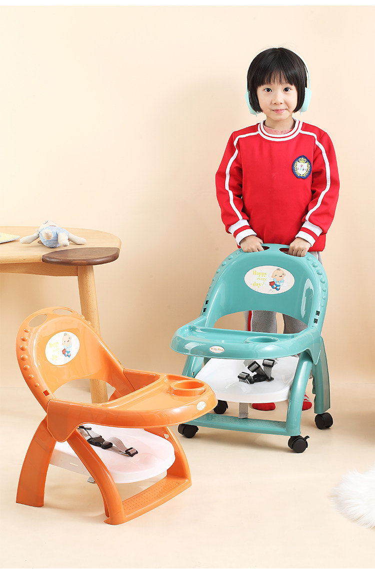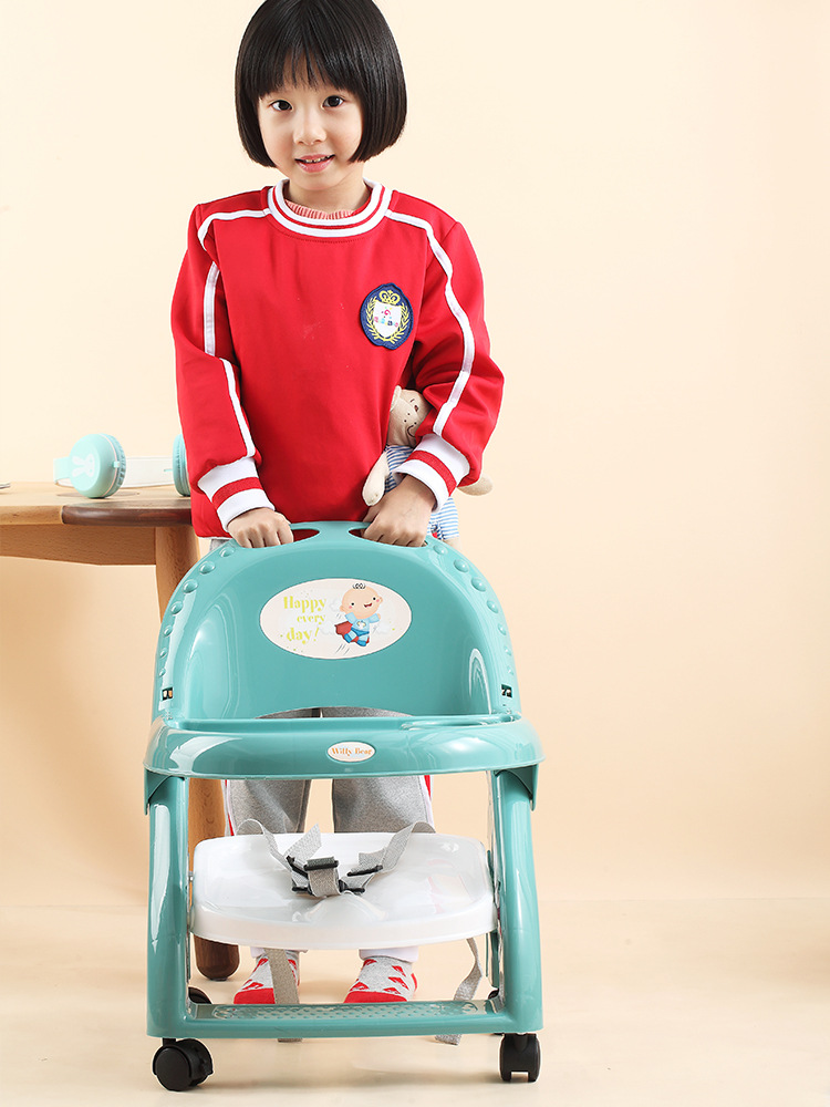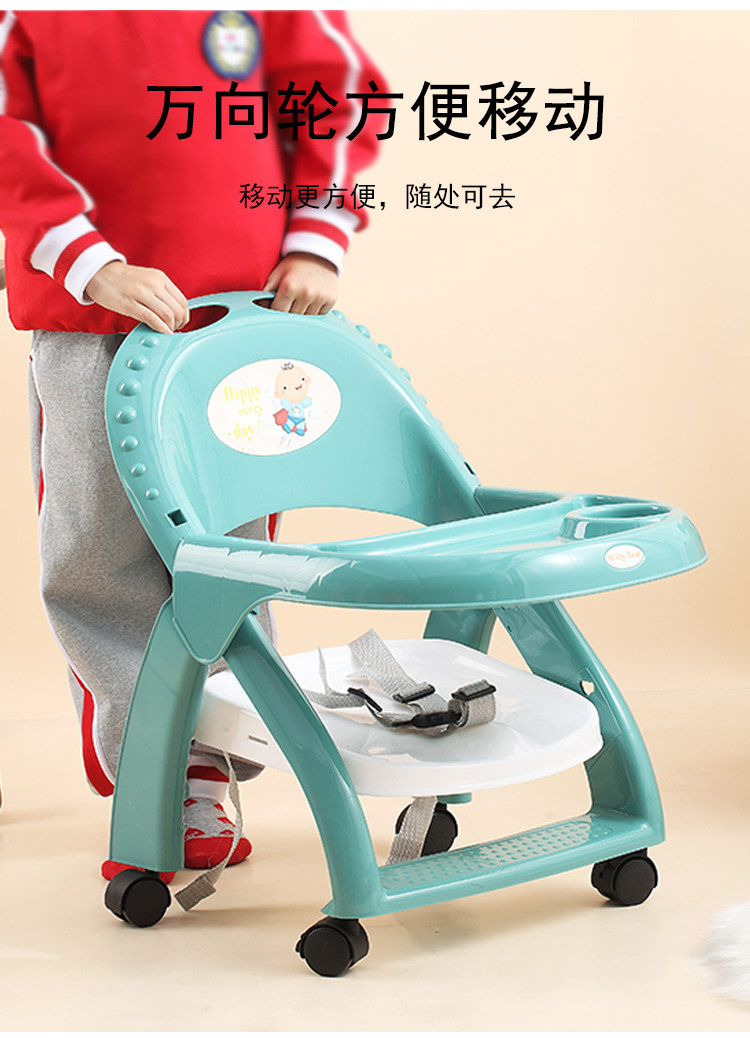 宝宝餐椅塑料多功能靠背椅儿童餐桌可折叠婴儿学坐椅带轮吃饭椅子