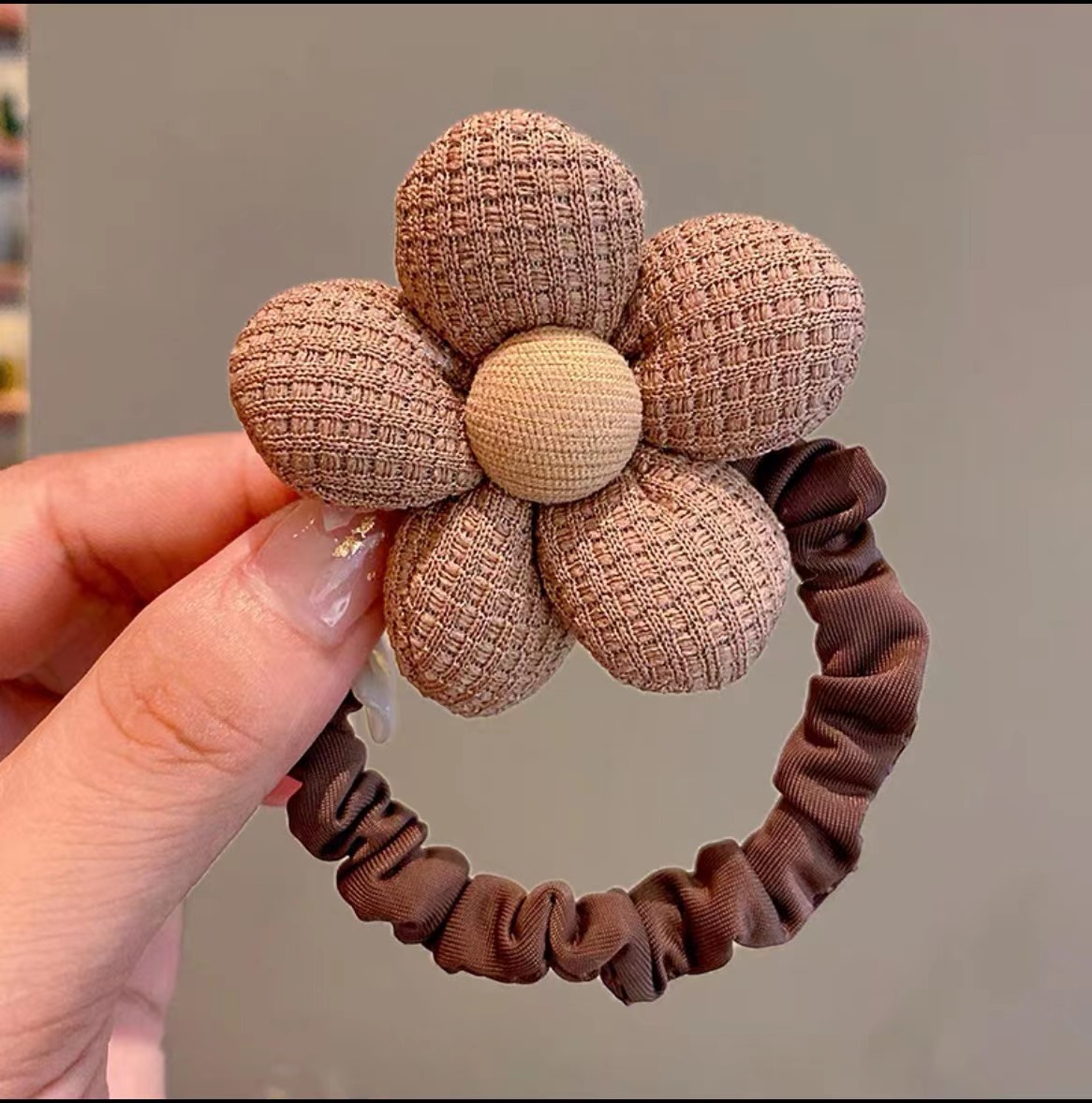 新款儿童奶咖色头绳布艺花朵发圈发绳女童不伤发皮筋头饰女孩发饰