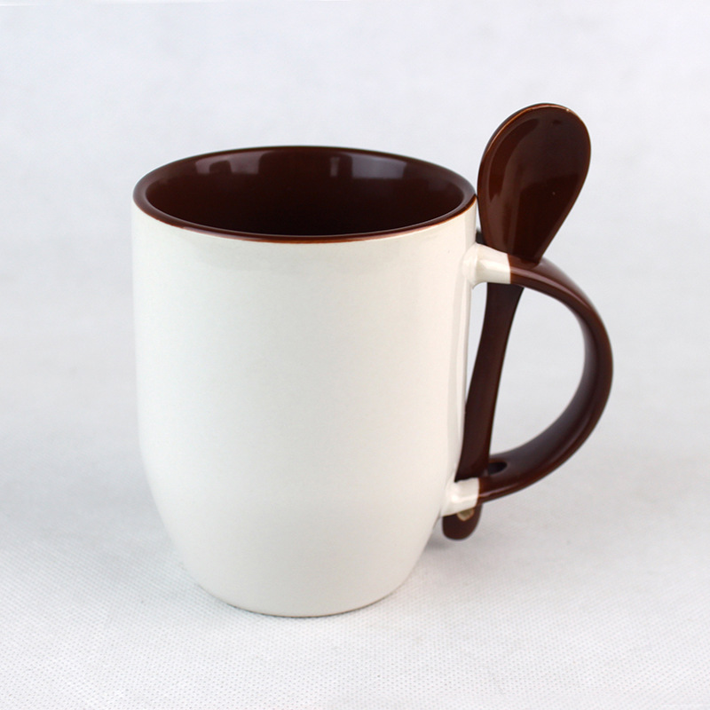 热转印插勺杯热转印涂层杯创意陶瓷杯马克杯厂家11oz双彩插勺杯