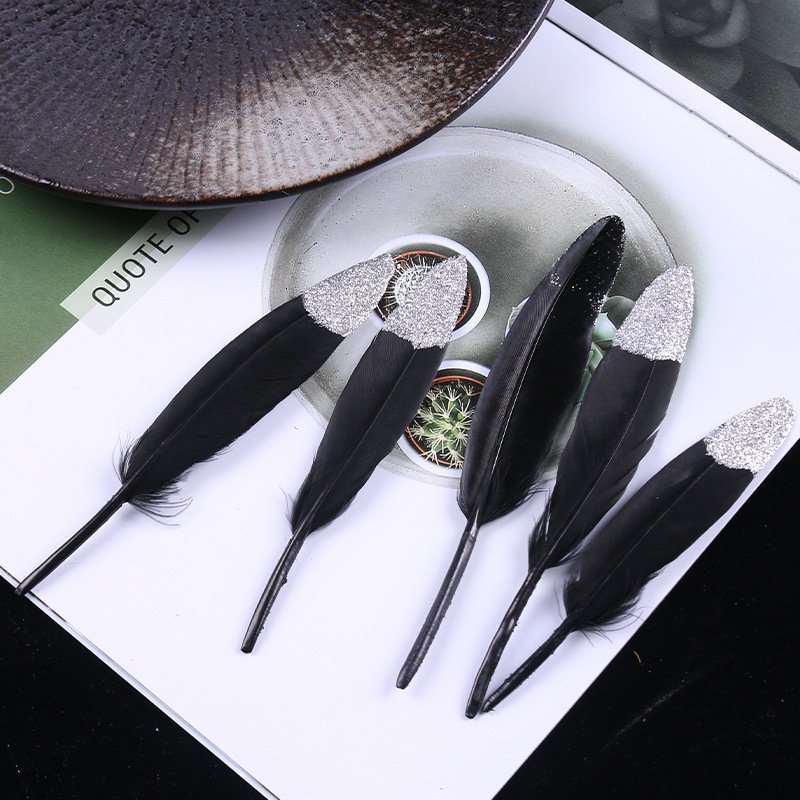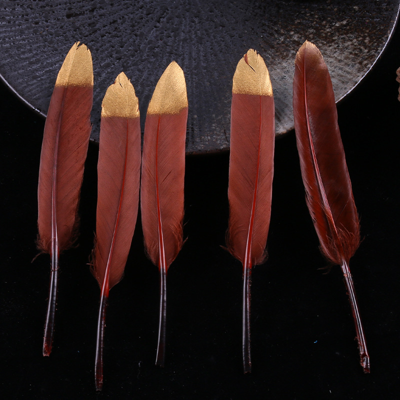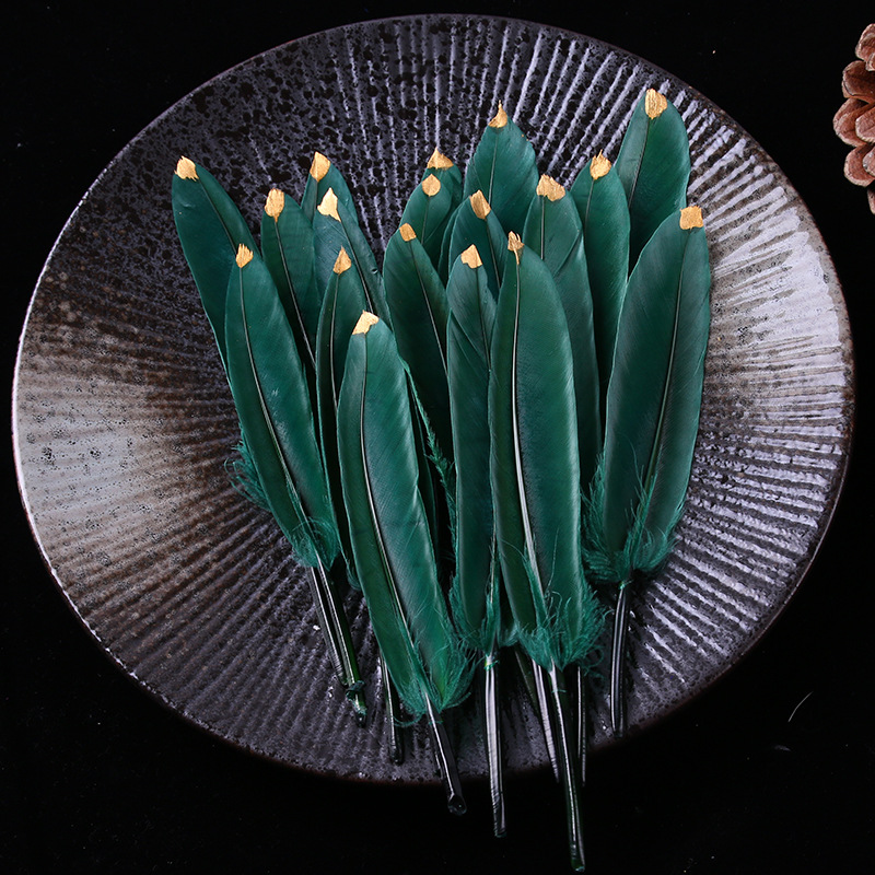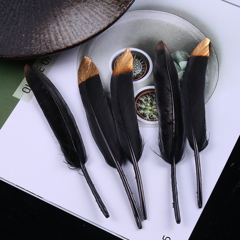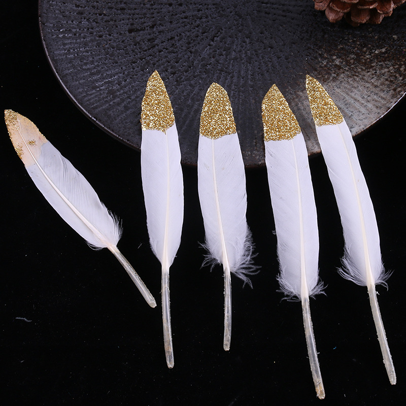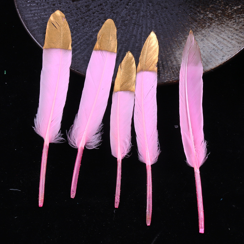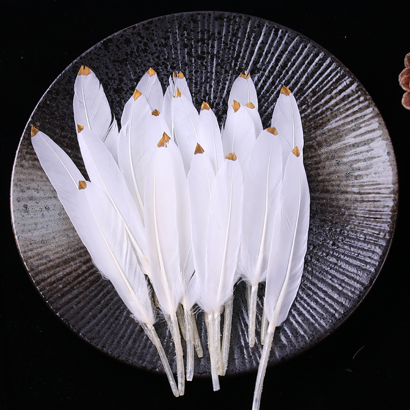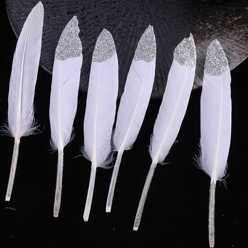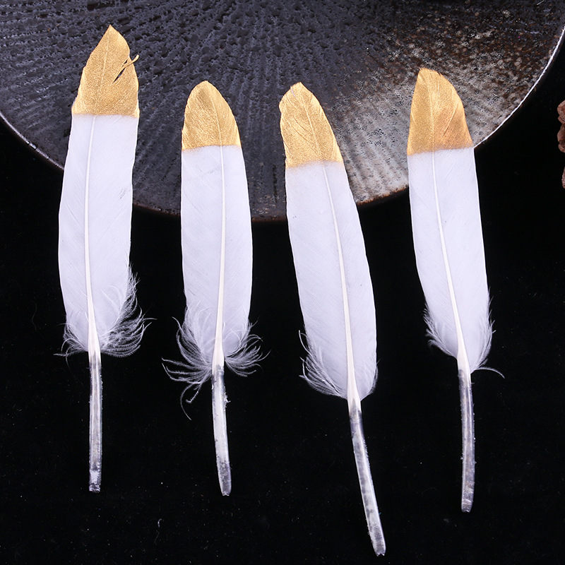 现货优质多色羽毛10-15cm喷金小直刀DIY手工饰品鹅毛服装工艺原料 English | 投诉