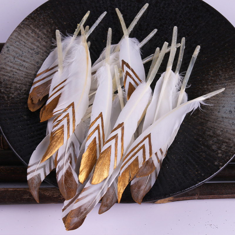 现货优质多色羽毛10-15cm喷金小直刀DIY手工饰品鹅毛服装工艺原料