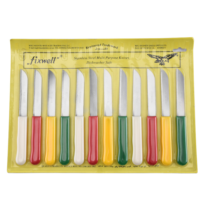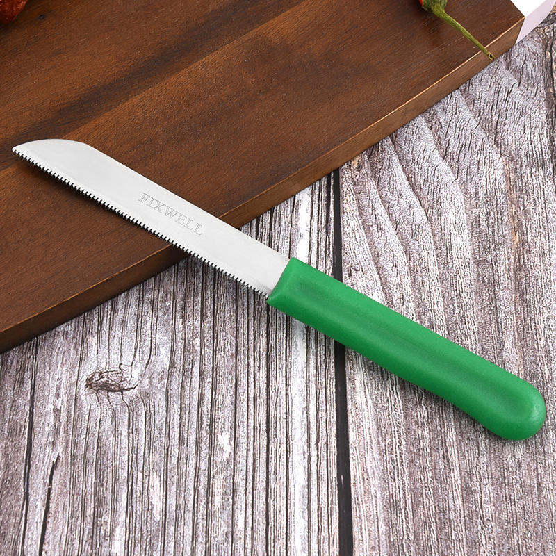 厂家批发不锈钢PP柄牛扒刀彩色塑料柄牛排刀套装厨房西餐刀具批发