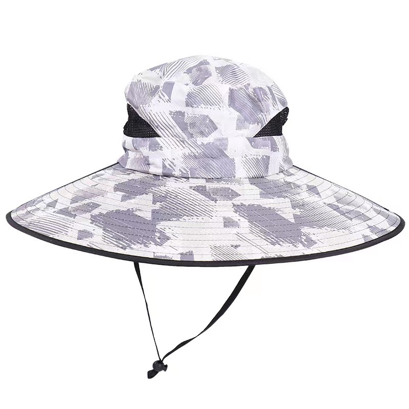 夏季男帽户外遮阳帽15厘米大檐钓鱼帽防晒帽登山太阳帽可折按扣