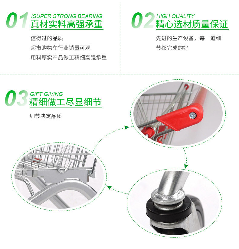 车筐可重叠式设计,购物使用空间、高配静音双轴承重万向轮、 载重货物后也可轻松掌控、推拉自由轻便灵活无声。