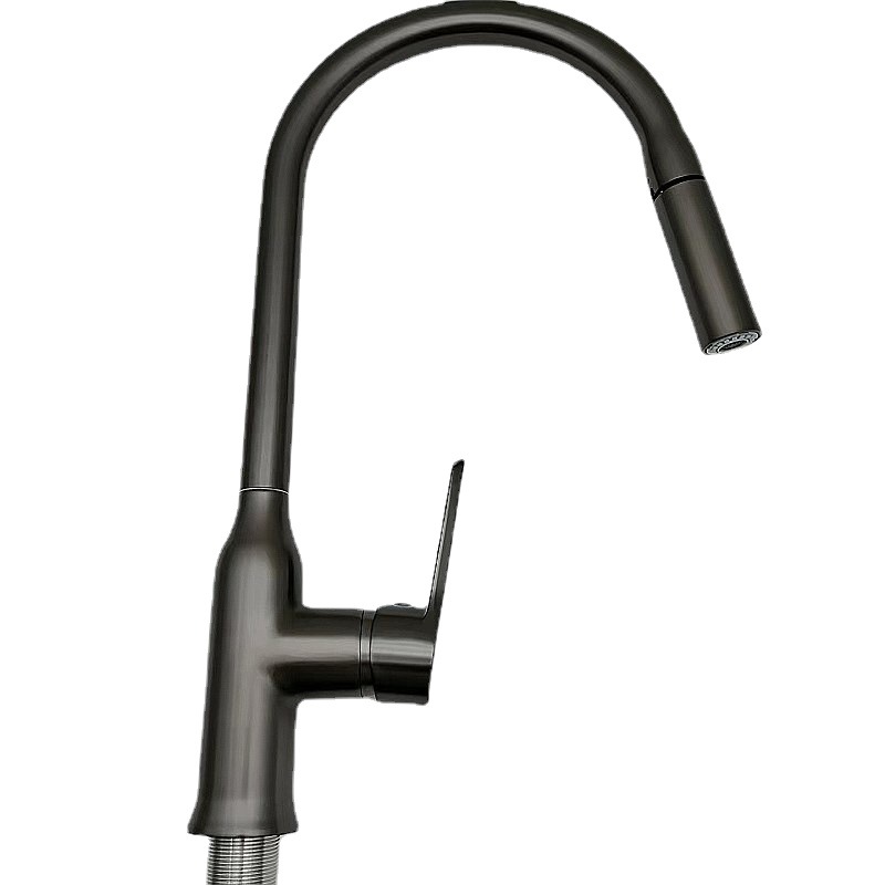 枪灰色铜抽拉厨房菜盆水龙头厨房伸缩管水龙头菜盆水槽抽拉龙头